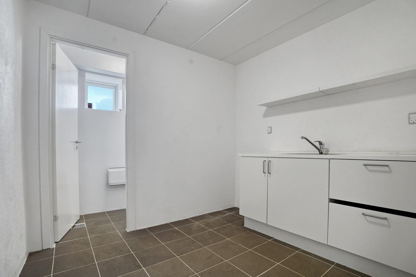 Beskrivelse: Lejemålet er indrettet med et lille forrum, som eventuelt kan bruges som et lille kontor eller værksted. Herfra er adgang til lageret, som har port ud mod gården. Der er kraftstik i lageret, og mulighed for at bruge repo'et ovenpå toilet/forrummet til opbevaring. Fra lageret er adgang til et lille rum med håndvask, som fører ind til toilettet.