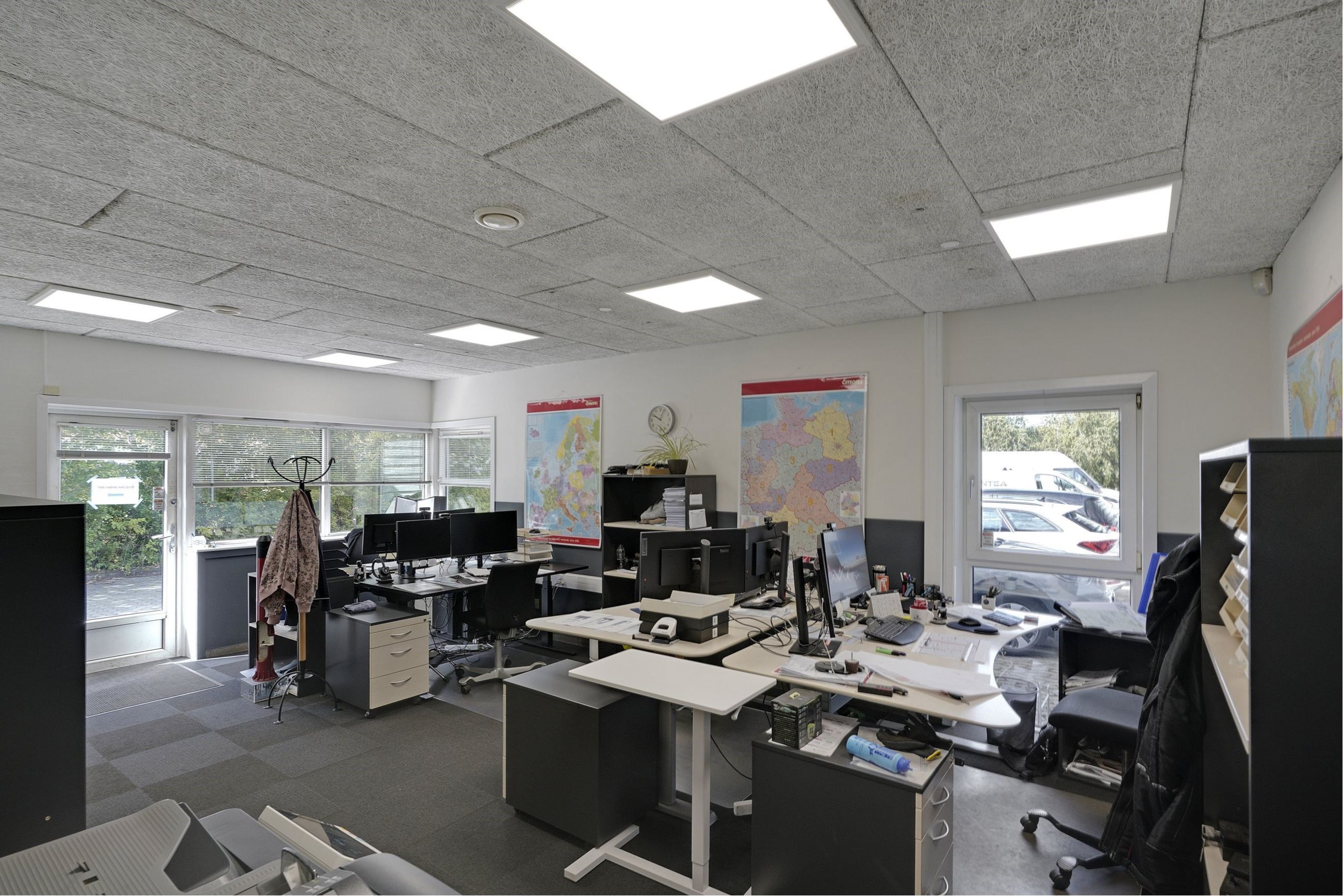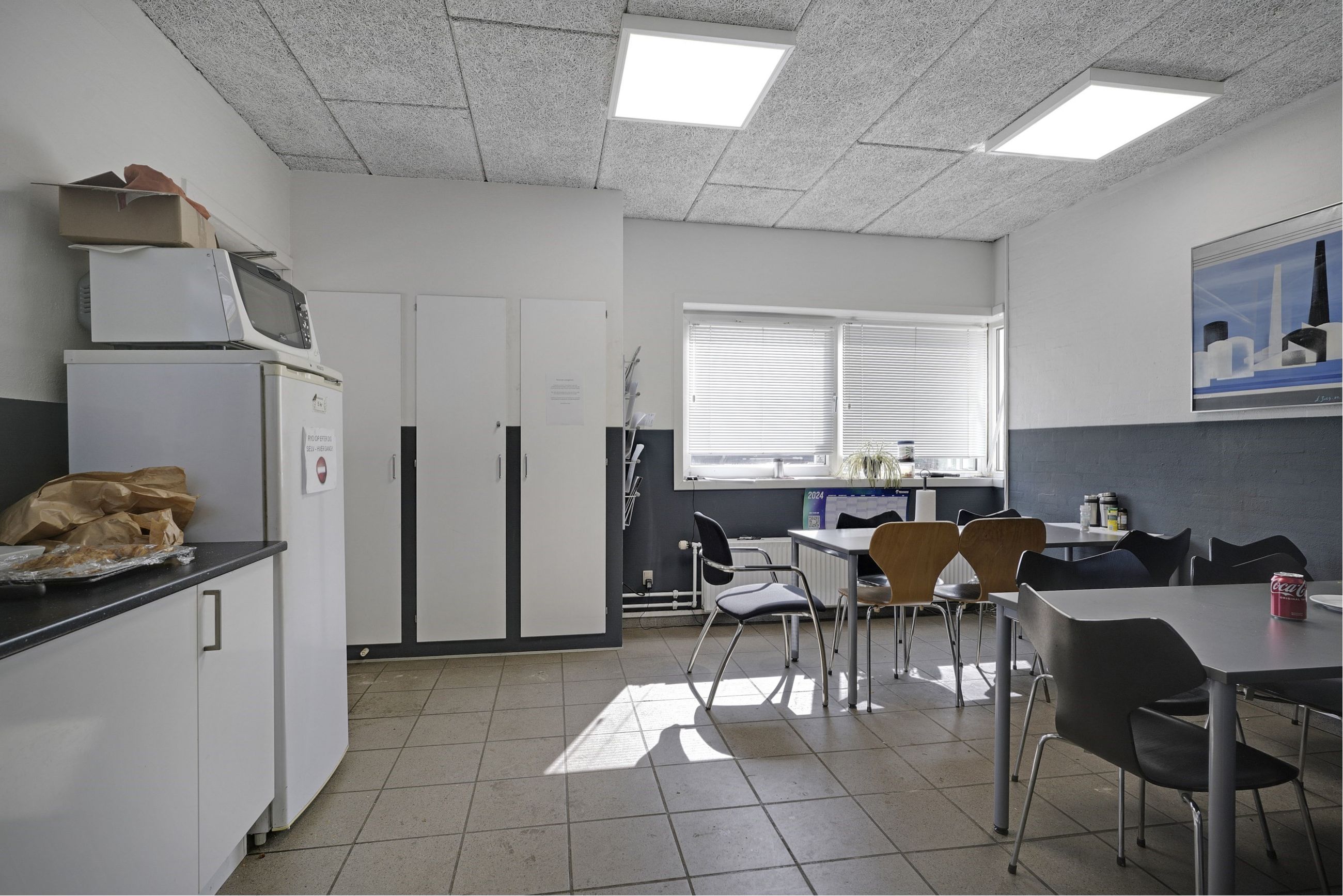Beskrivelse: Ejendommen er indrettet med kontorafsnit, et pænt kantinelokale samt bade/toilet faciliteter.