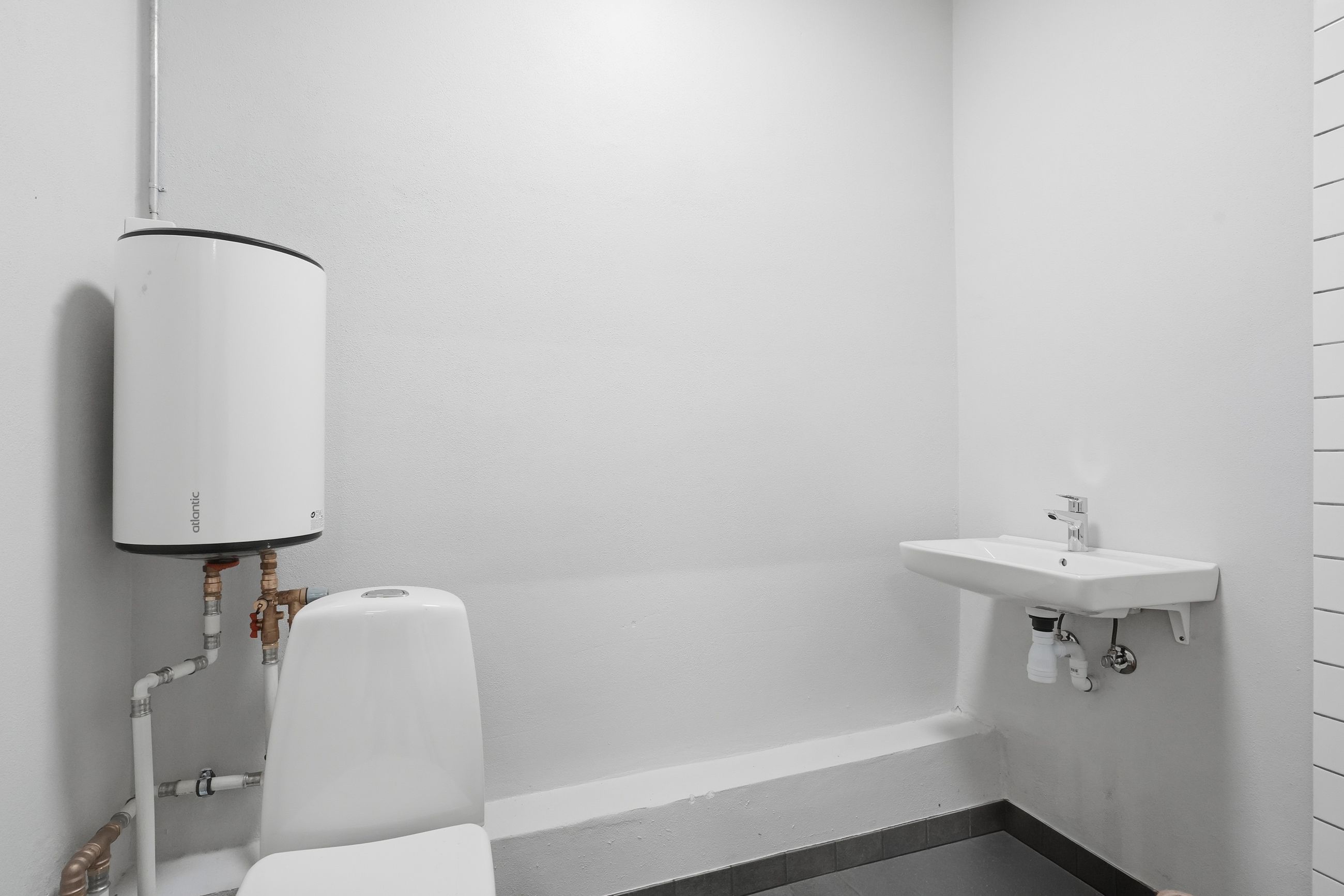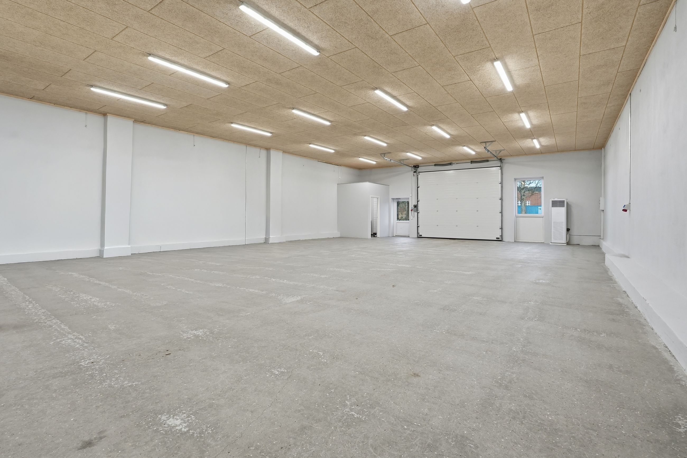 Beskrivelse: Lageret fremstår som et stort, regulært og opvarmet lokale, der giver gode muligheder for opbevaring, mindre produktion eller logistikfunktioner. Lejemålet har en rigtig god loftshøjde, solid betongulv og en større portadgang, for nem ind- og udlevering. Derudover er der tilhørende toilet.