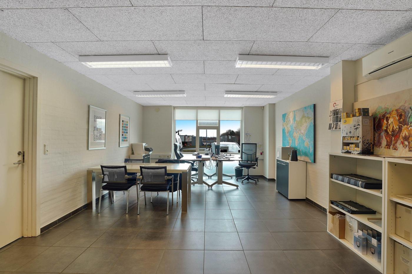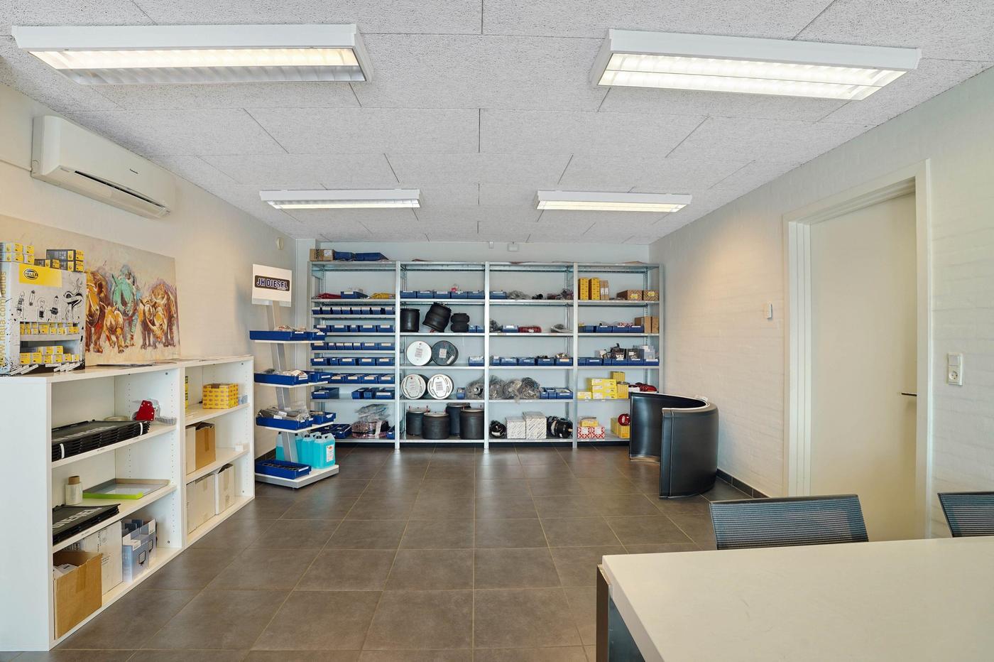Beskrivelse: Lejemålet består af et kontor på 35 m² + 250 m² lager, fælles entré, fælles køkken og 2 fælles toiletter. På kontoret må der max sidde 4 personer fast.