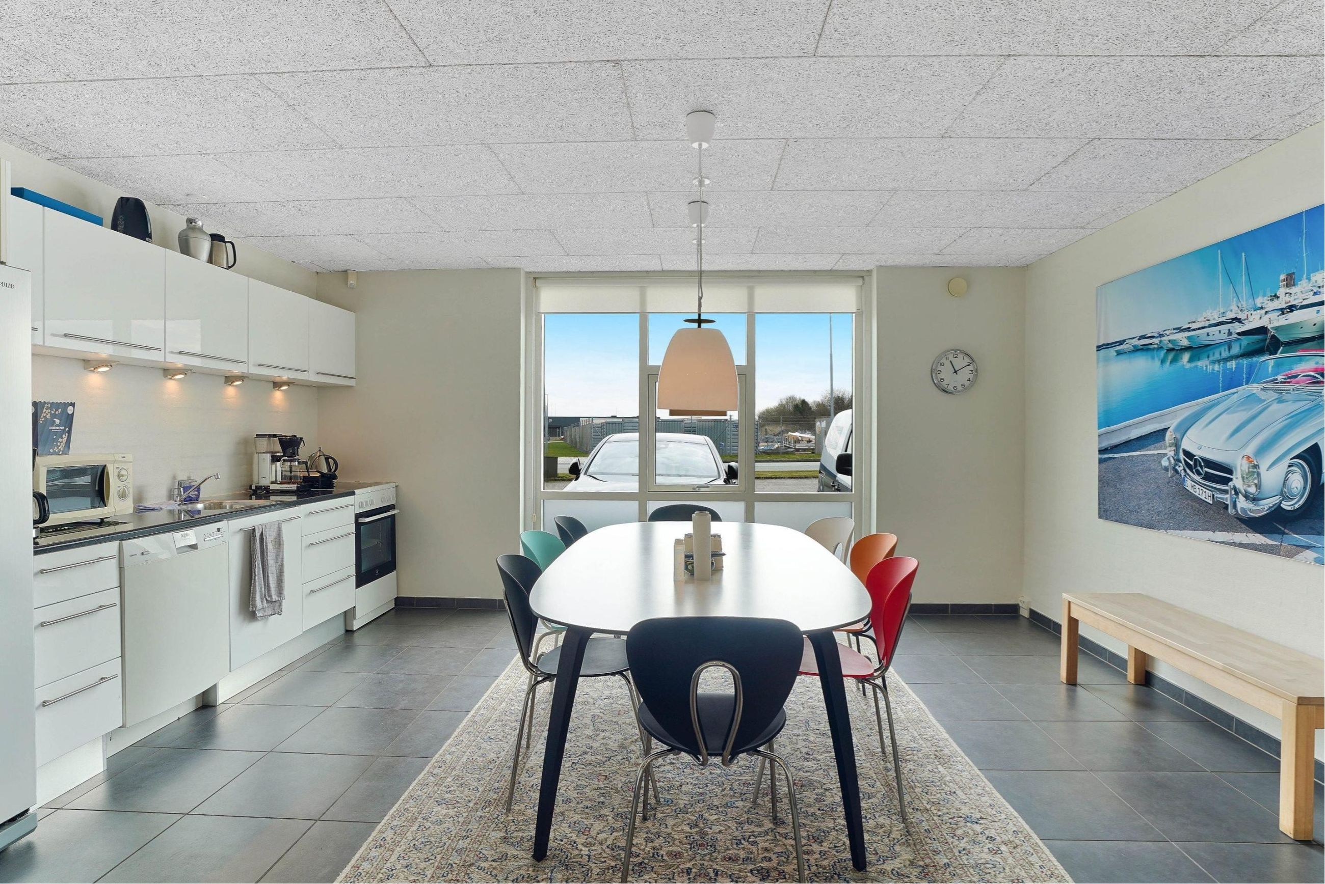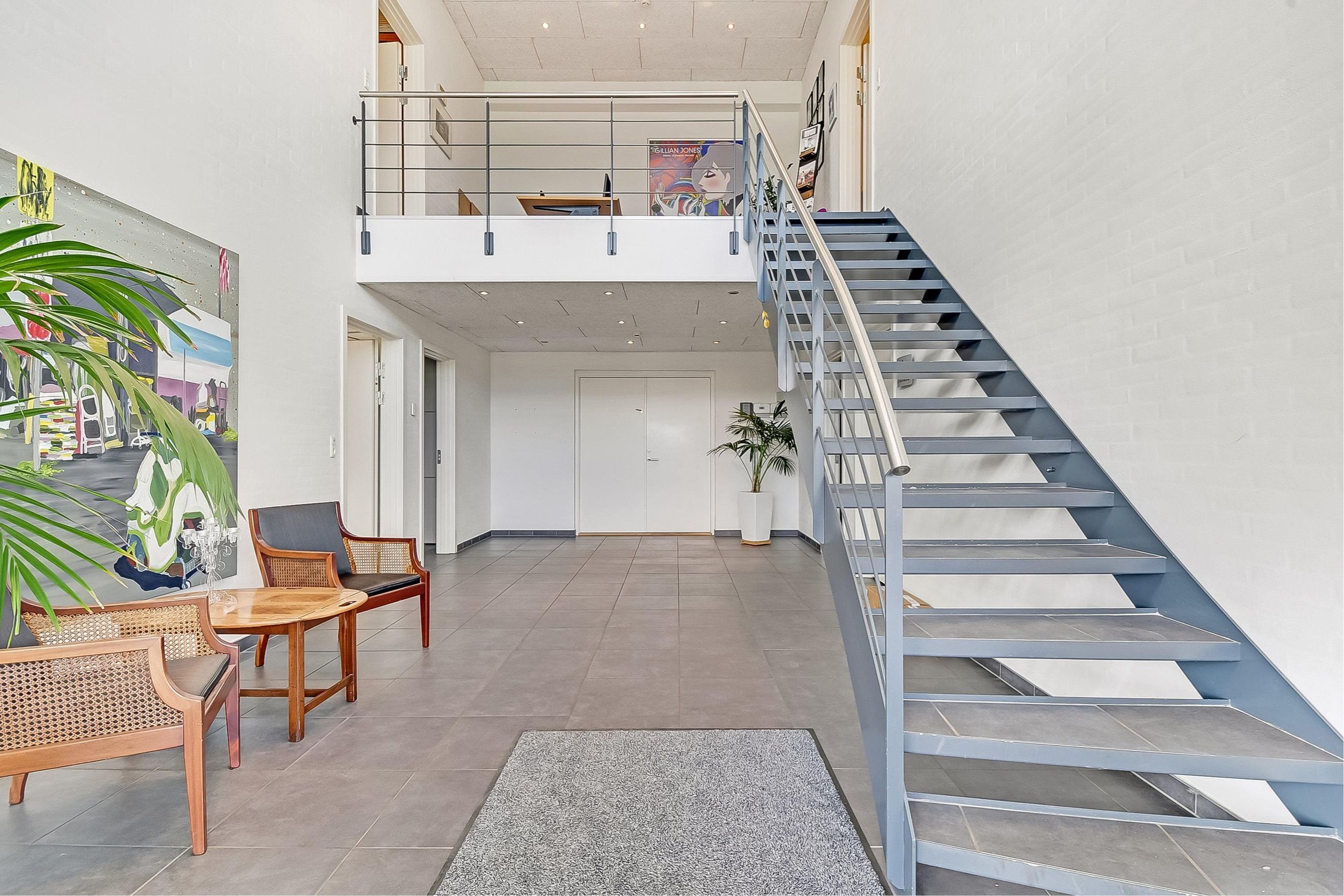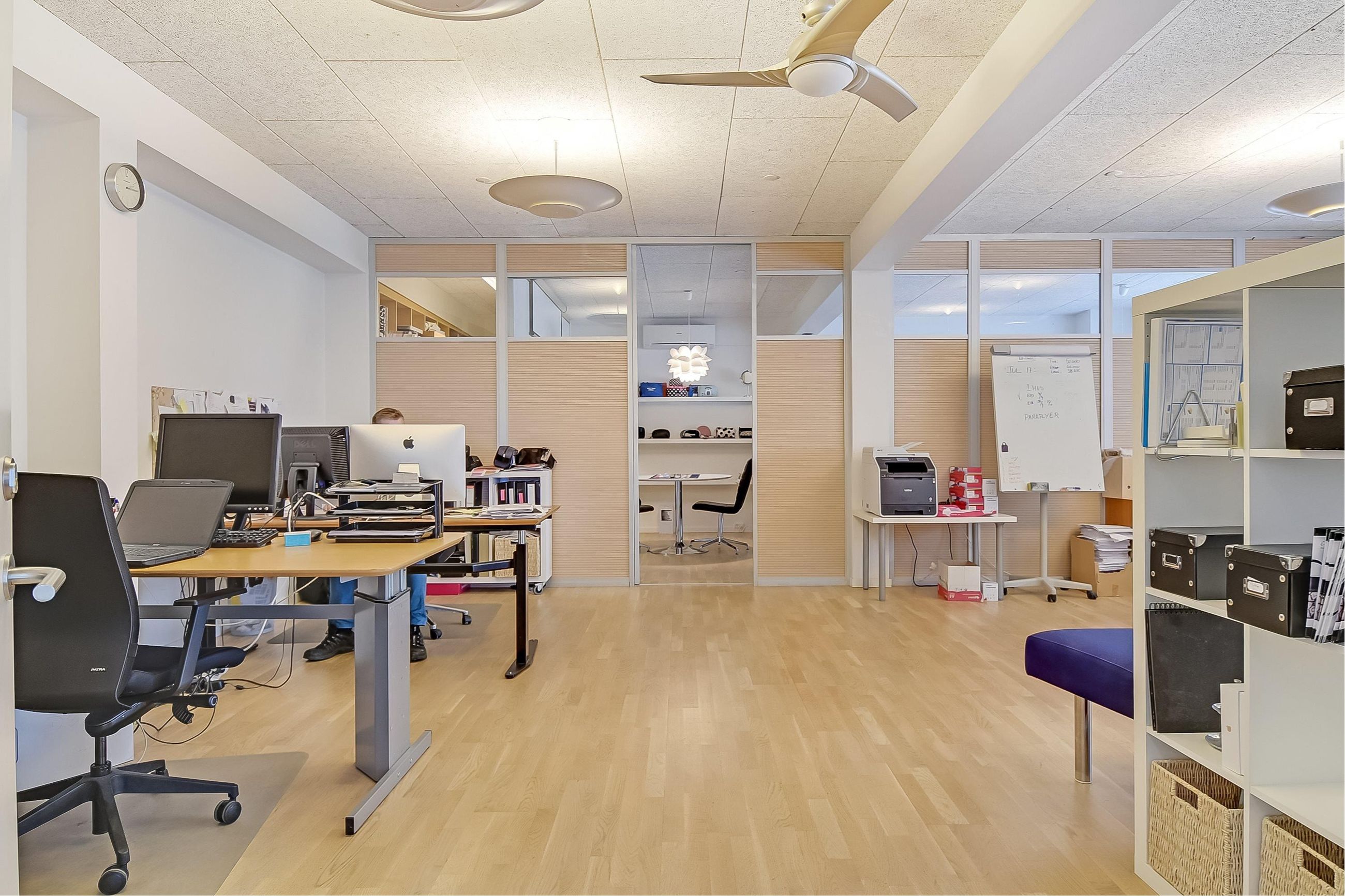 Dette kontorlejemål på 80m² er velholdt og byder på en moderne og indbydende indretning. Lejemålet har adgang til fælles kantine og toiletter. Kontoret er lyst og rummeligt med mulighed for fleksibel indretning, så det kan tilpasses virksomhedens specifikke behov. Lokalet bagerst i lejemålet kan blandt andet benyttes som mødelokale eller privat kontor. De 250 m² lager er i en højloftet hall og der er port indtil det.