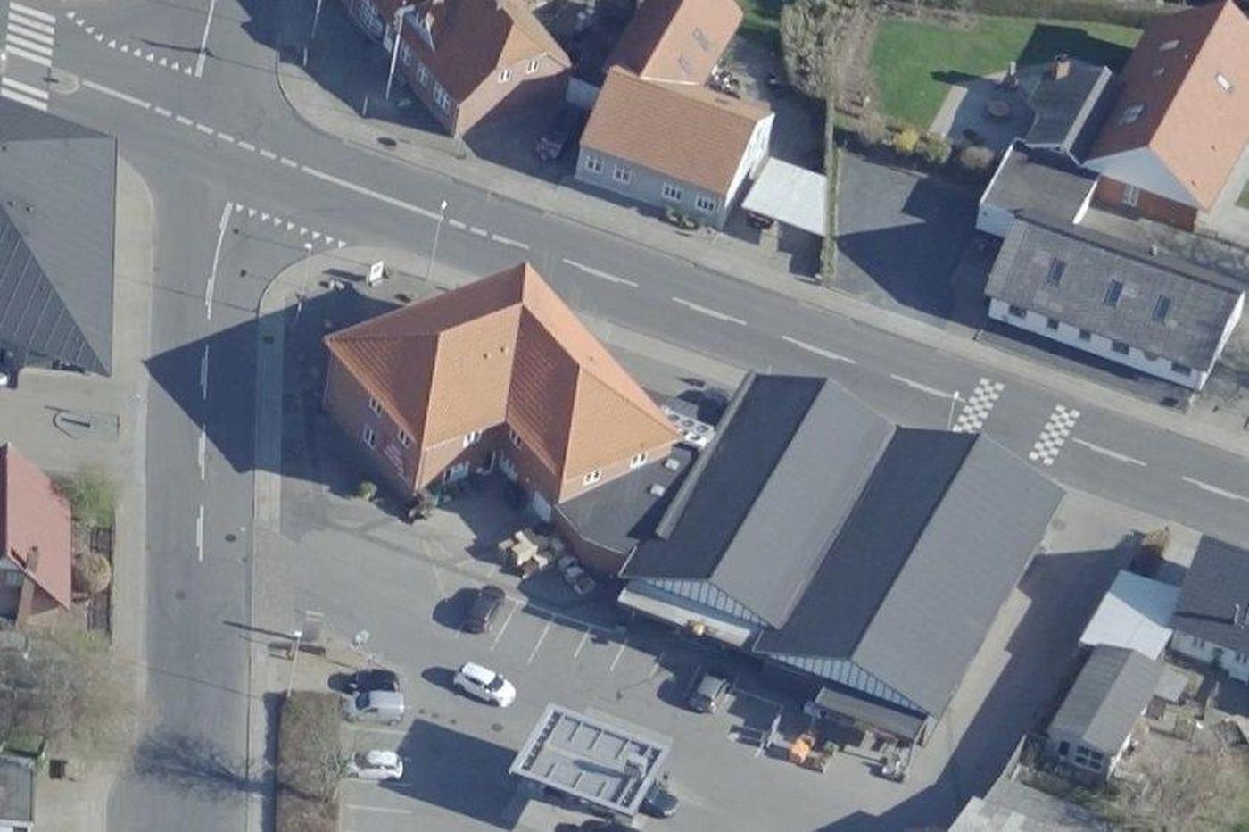 Beskrivelse: Hovedbygningen er opført i 1934, til- og ombygget i 1978. Opføt i røde mursten og hhv. tegltag og eternittag. Bygningen. er indrettet med en Dagli Brugsen butik på ca. 600 m² med lager og personalerum, et Solcenter på 143 m², en 135 m² stor lejlighed (ikke udlejet) samt 4 værelser med fælles køkken og bad (udlejet).