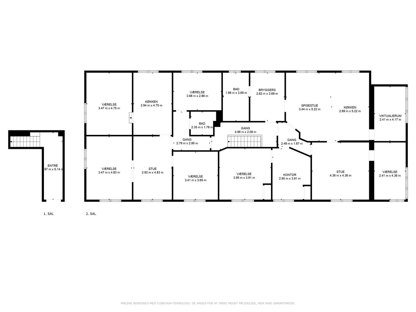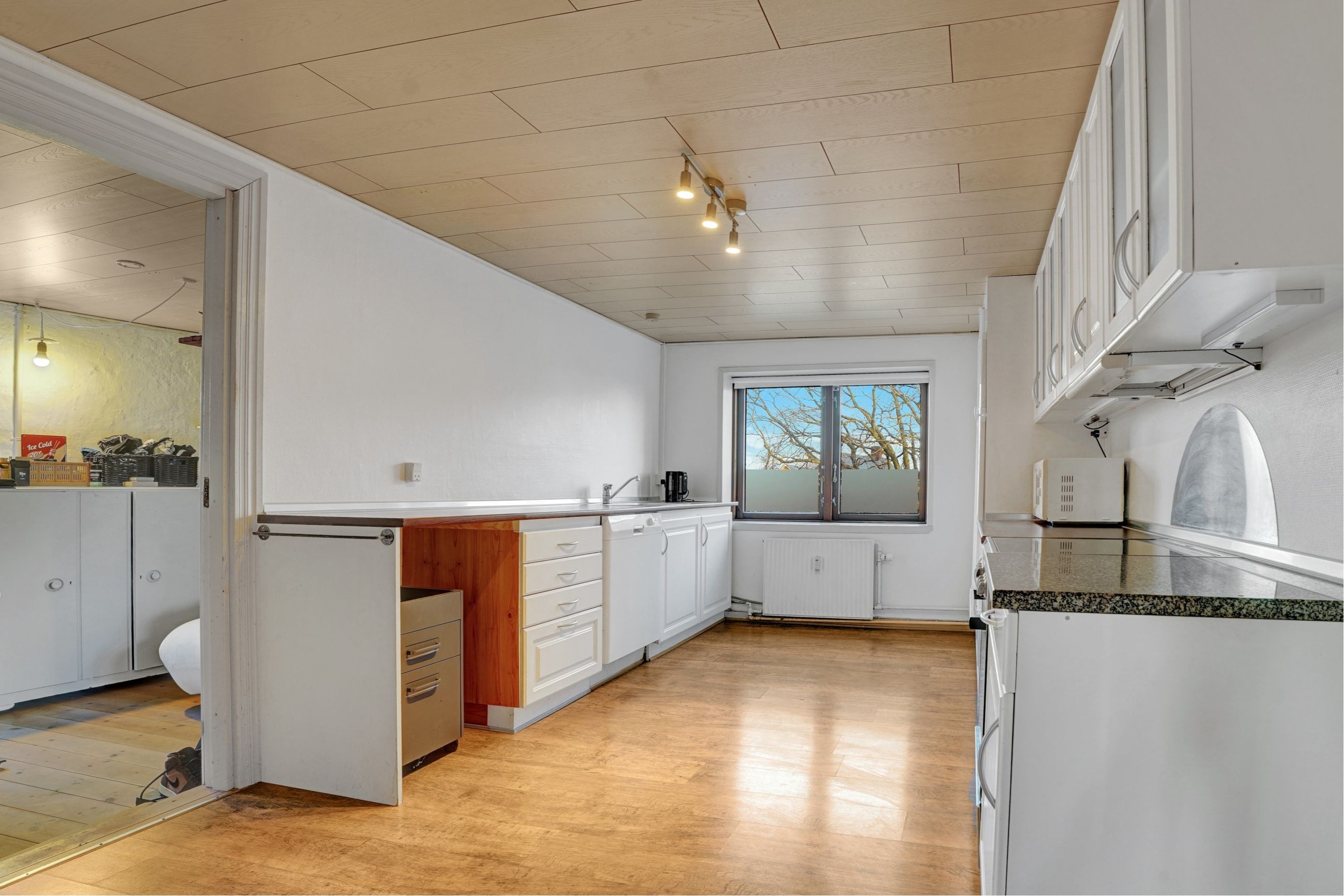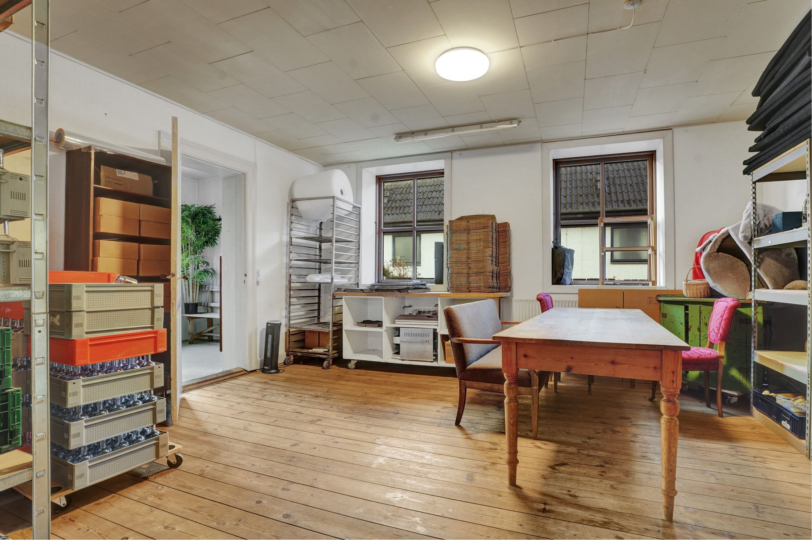Beskrivelse: Ejendommen er jf. BBR opført i 1898 med til-/ombygning i 2002 og rummer 239 m² beboelse og 236 m² erhvervsareal. Sælger har i 2023 lagt nyt tag på og fået ejendommen hulmursisoleret. De tre beboelseslejligheder bruges af ejer, men det vurderes, at lejlighederne vil kunne indbringe en leje på ca. kr. 270.000 årligt.