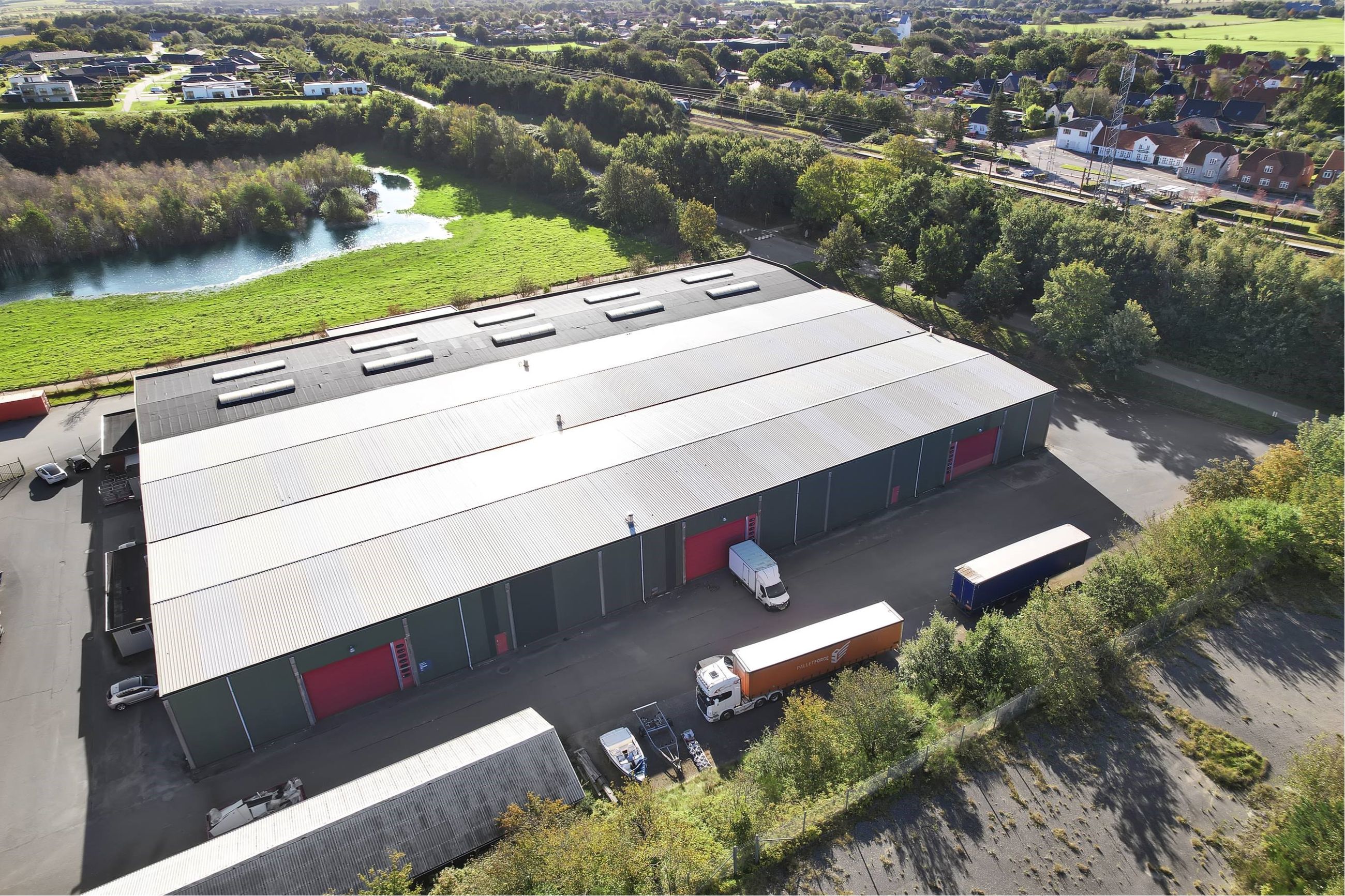 Introduktion: Nordicals erhvervsmæglere tilbyder en velbeliggende erhvervsejendom i Tjæreborg til leje. Der er tale om et højloftet lager på 2.060 m². Hele grunden er hegnet, og der er kode på porten. Der er gode manøvrearealer, da det er muligt at køre hele vejen rundt om ejendommen, hvilket er ideelt for større lastbiler ved levering og afhentning af varer. Hele belægningen på matriklen er etableret med henblik på tung transport.