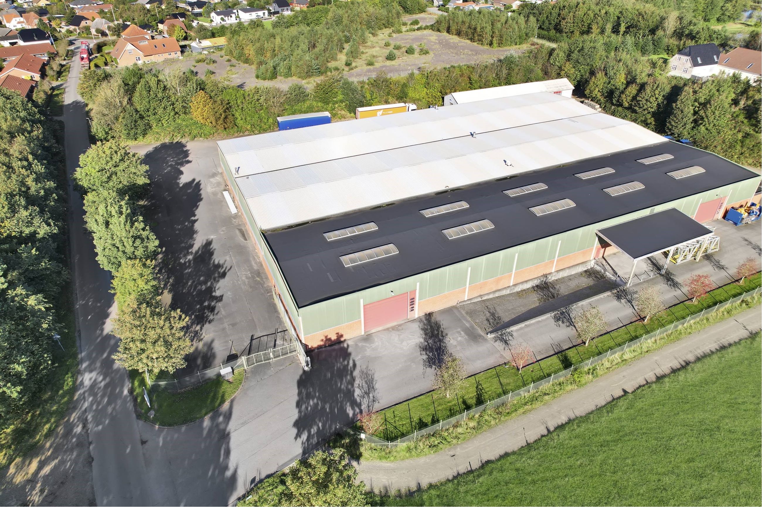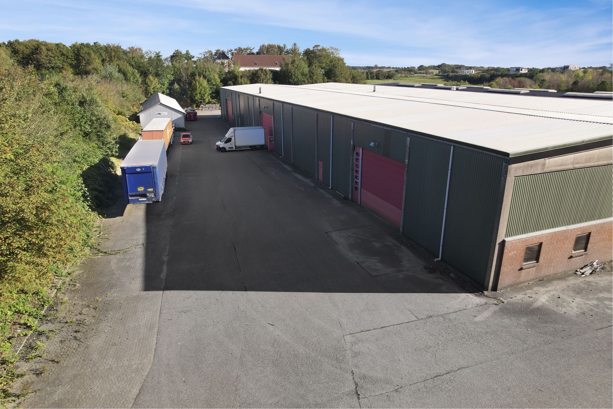 Introduktion: Nordicals erhvervsmæglere tilbyder en velbeliggende erhvervsejendom i Tjæreborg til leje. Der er tale om et højloftet regulært lager på 629 m². Hele grunden er hegnet, og der er kode på porten. Der er gode manøvrearealer, da det er muligt at køre hele vejen rundt om ejendommen, hvilket er ideelt for større lastbiler ved levering og afhentning af varer. Hele belægningen på matriklen er etableret med henblik på tung transport.