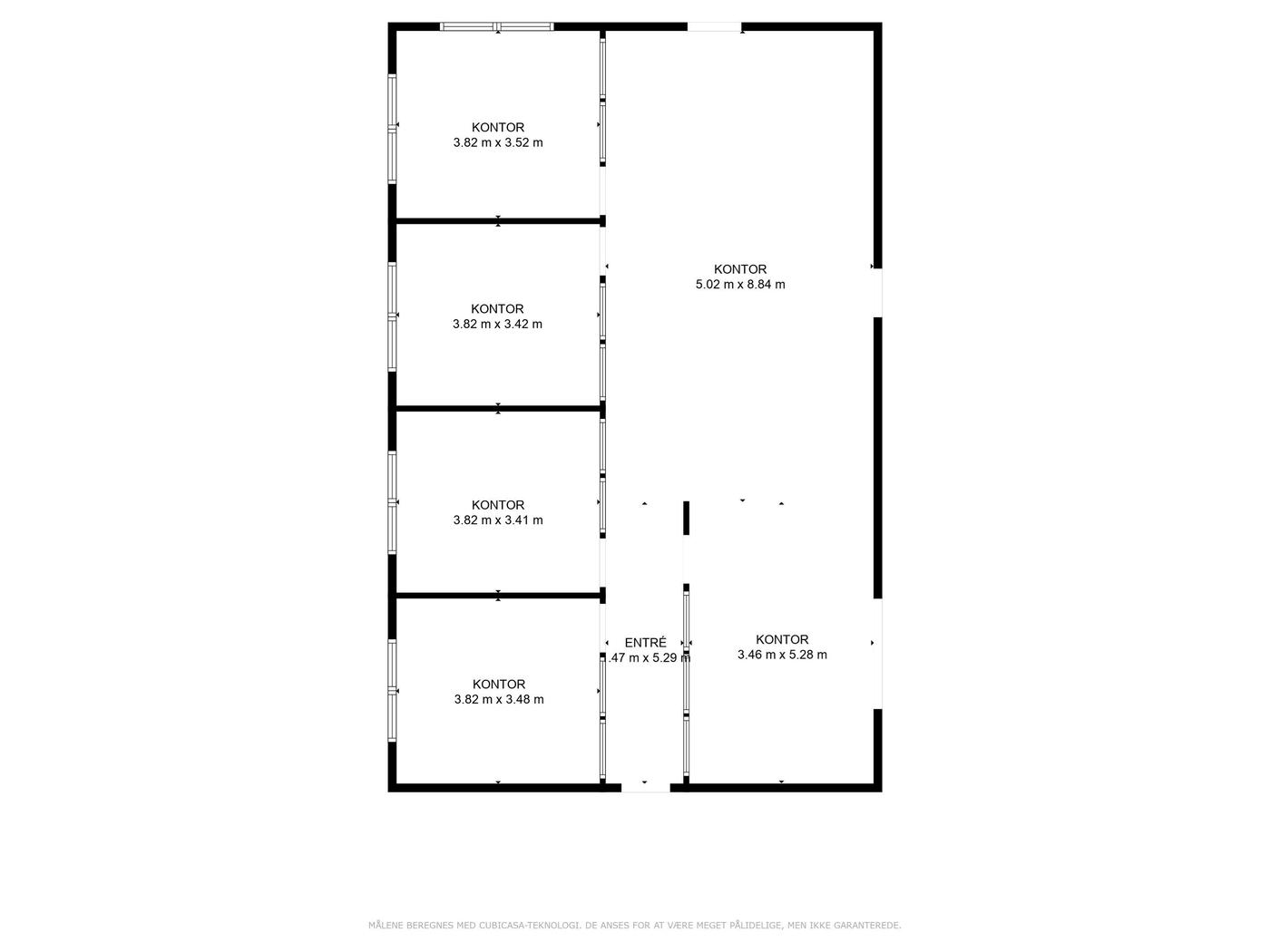 Lejemålet er indrettet som storrumskontor, som også kan anvendes til lager eller opbevaring.