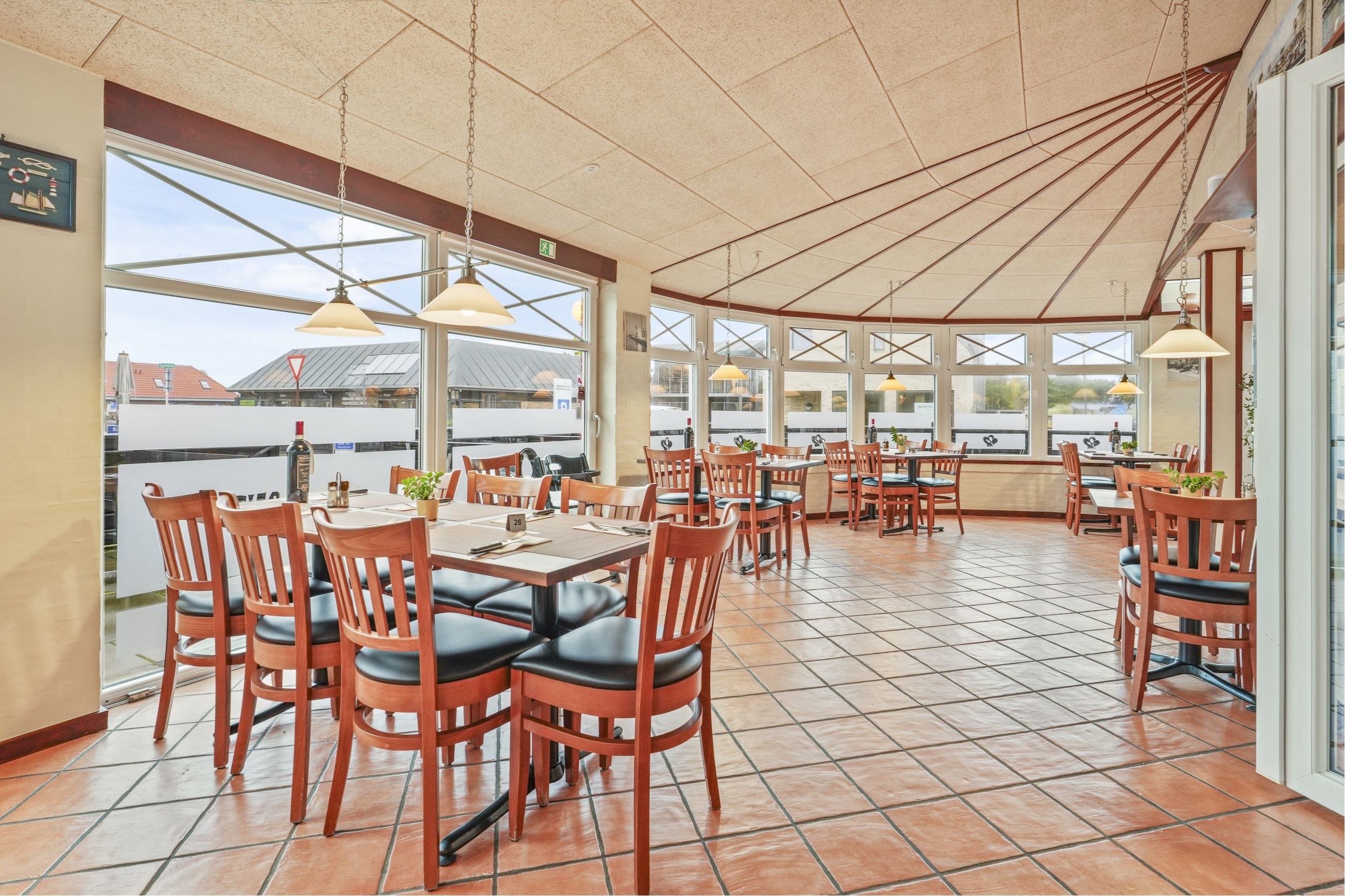 Ejendommen indeholder i stueplan restaurant med rigtig fine og hyggelige lokaler, en restaurant med en hyggelig atmosfære. Der er vinduer hele vejen rundt i restauranten, hvilket giver et godt lysindfald. Lokalet er regulært og kan rumme mange gæster.