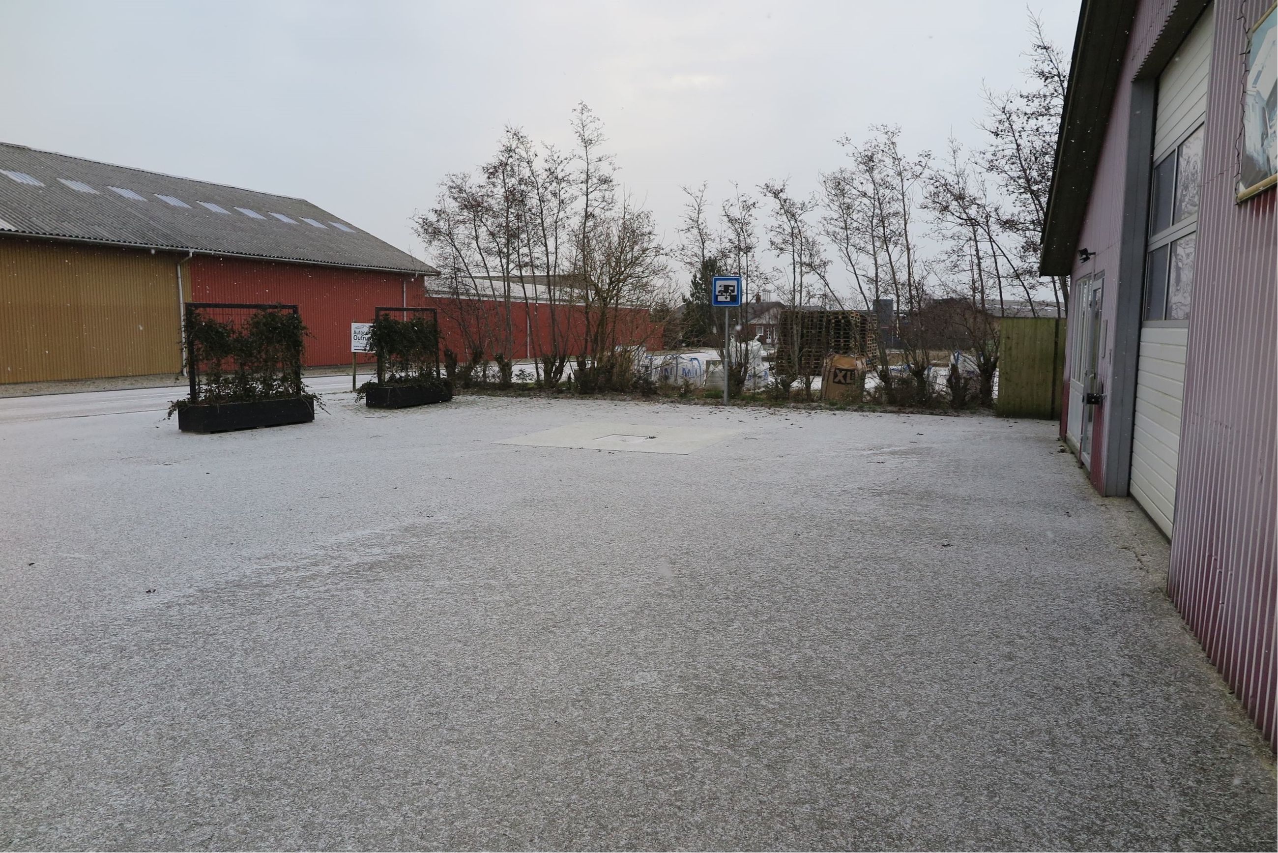 Beskrivelse: Ejendommen indeholder 2 haller på hhv. 404 og 112 m². Hallen på 404 m² er jf. BBR bygget i 1978 og er opdelt med en kold del med hejseport ud mod vejen og en isoleret del. Der er adgang via dobbeltdør mellem de 2 haller. I enden af bygningen findes nyere information/reception til brug for de overnattende autocampister, hvor der er selvbetjening for leje af grund, wifi og strøm. Endvidere findes kontor/stue, 2 toiletter samt frokoststue alt til brug for de overnattende autocampister. Der er nyere elinstallationer i den bagerste del af bygningen.