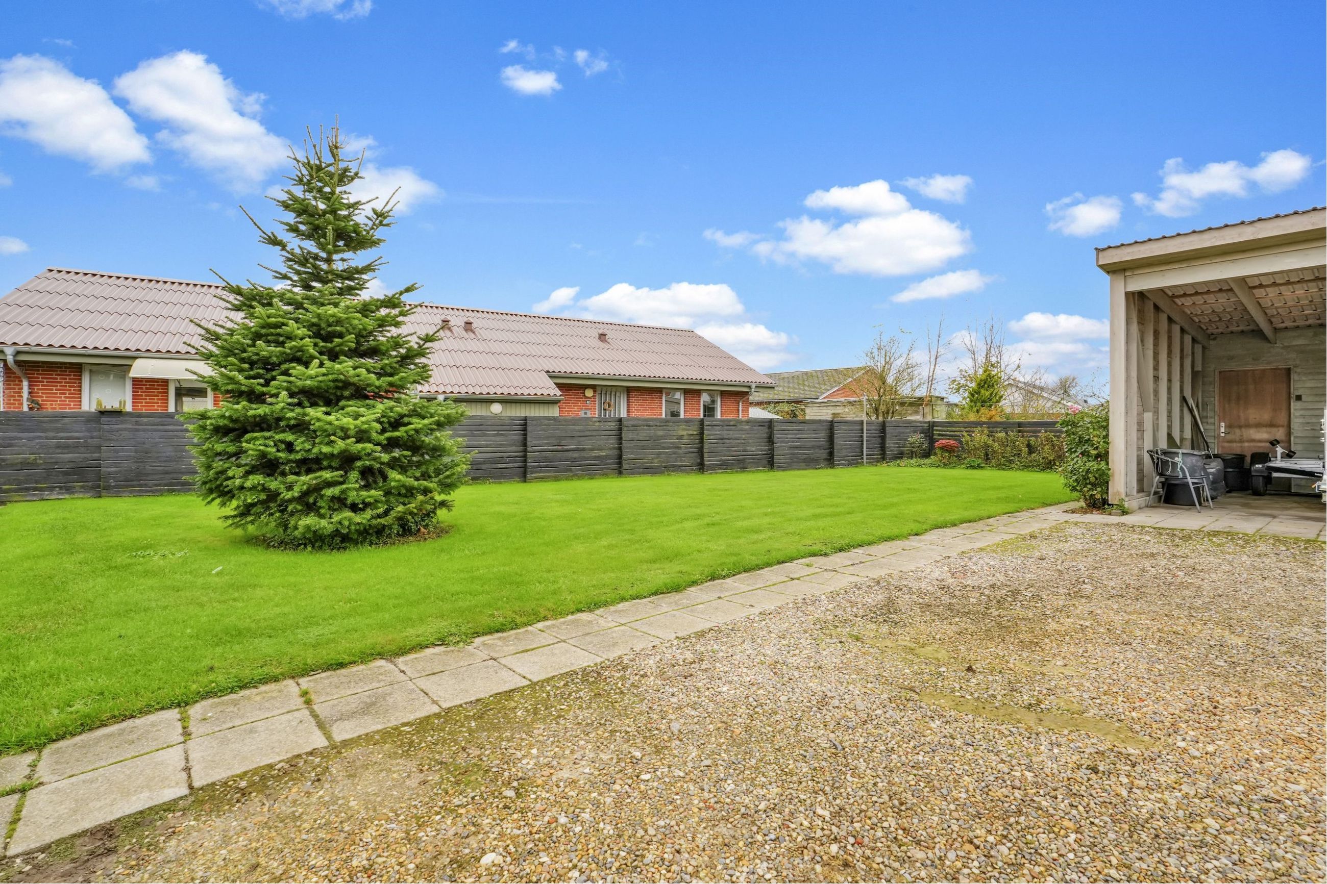 Ejendommen har en 676 m² stor grund, og udenomsarealerne fremtræder pænt vedligeholdt.