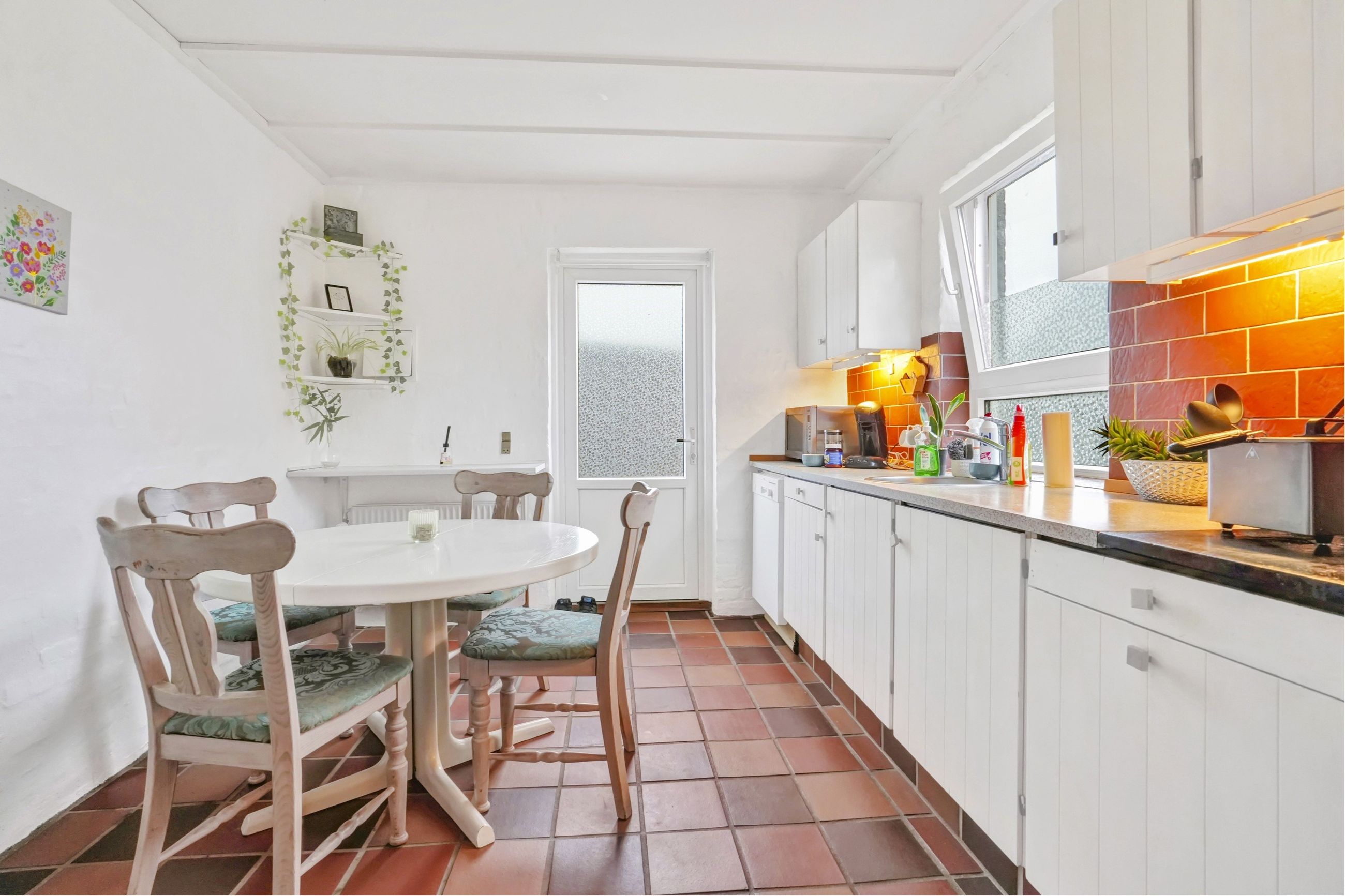 Storegade 9A er indrettet med et fint køkken med hvidt inventar. Badeværelse med bruseniche. Kombineret spisestue og stue samt et større værelse.