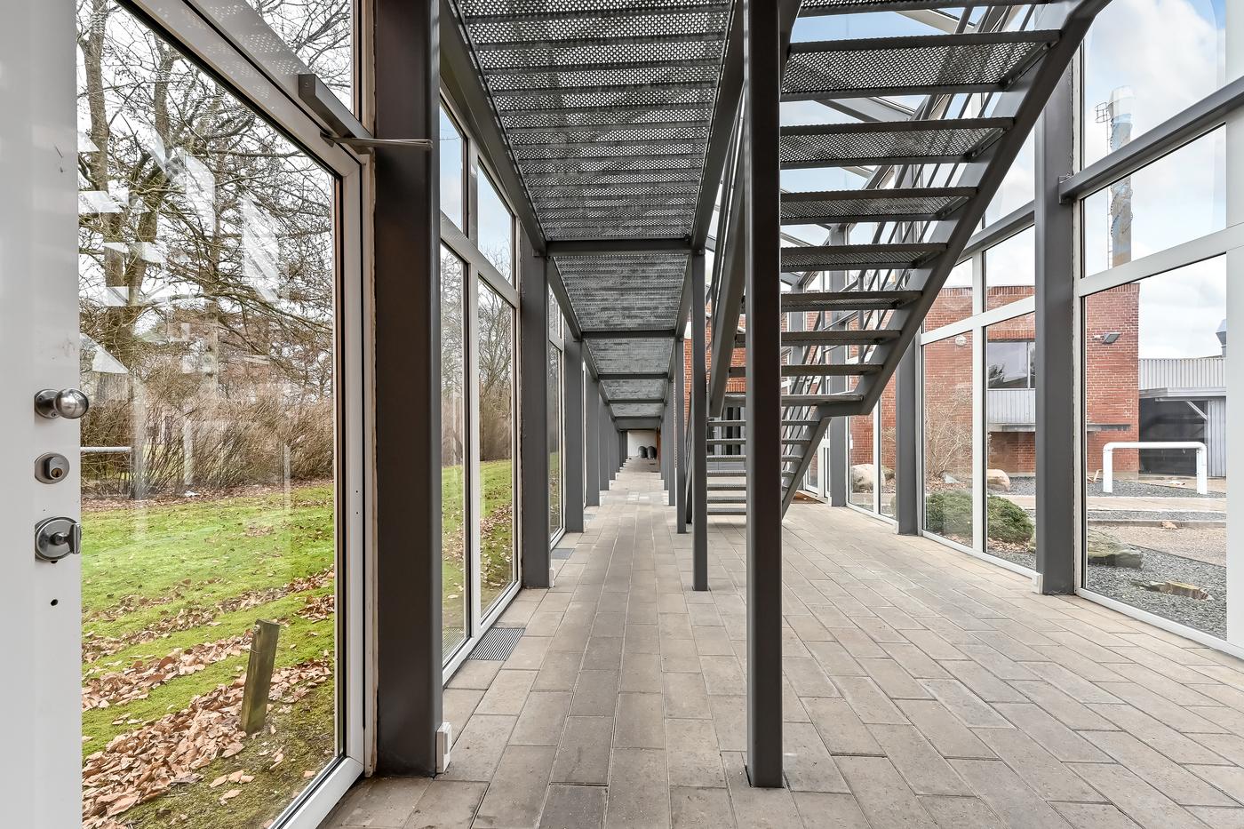 Lejemålet tilgås via ejendommens fælles indgangsparti, som deles med tilhørende produktionslokaler. Indgangen fremstår lys og indbydende med flisegulv og store glaspartier, der giver et flot naturligt lysindfald. I den fælles mellemgang findes et teknikrum.