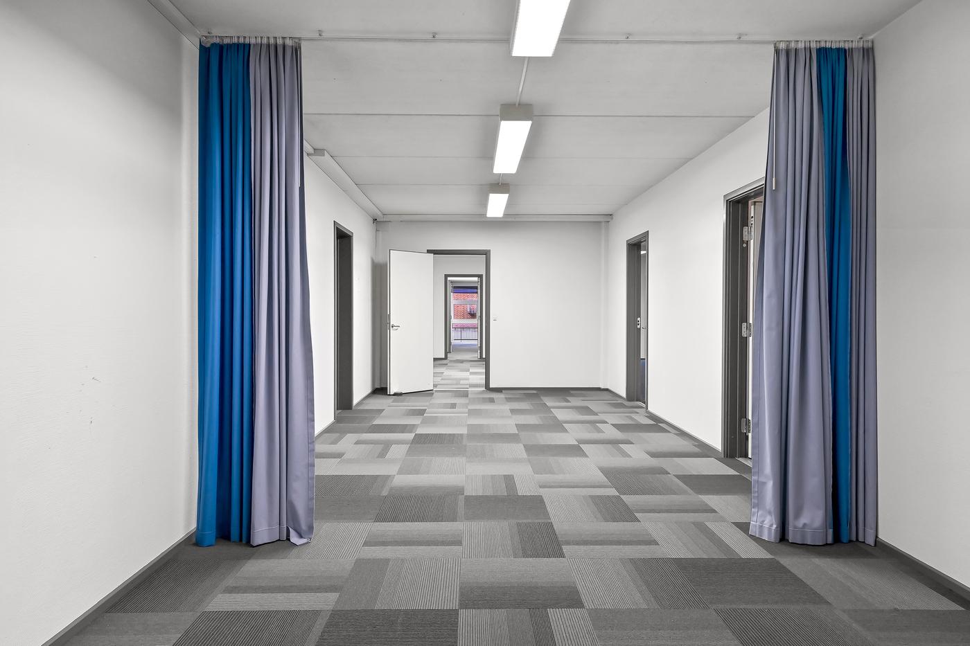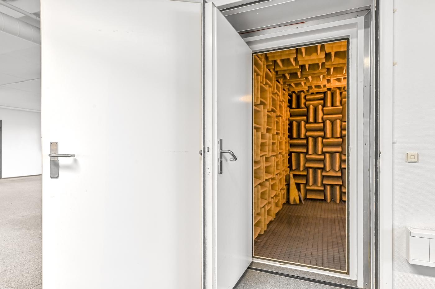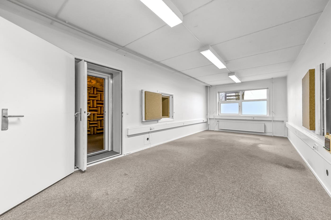 Fra det åbne kontorlokale på 1. sal er der videre adgang til endnu et åbent kontorareal, som rummer to særlige faciliteter i form af to lydtætte rum med dobbelte panserdøre, ideelle til fortrolige samtaler, online-møder, optagelse eller andre funktioner, der kræver ekstra støjafskærmning.