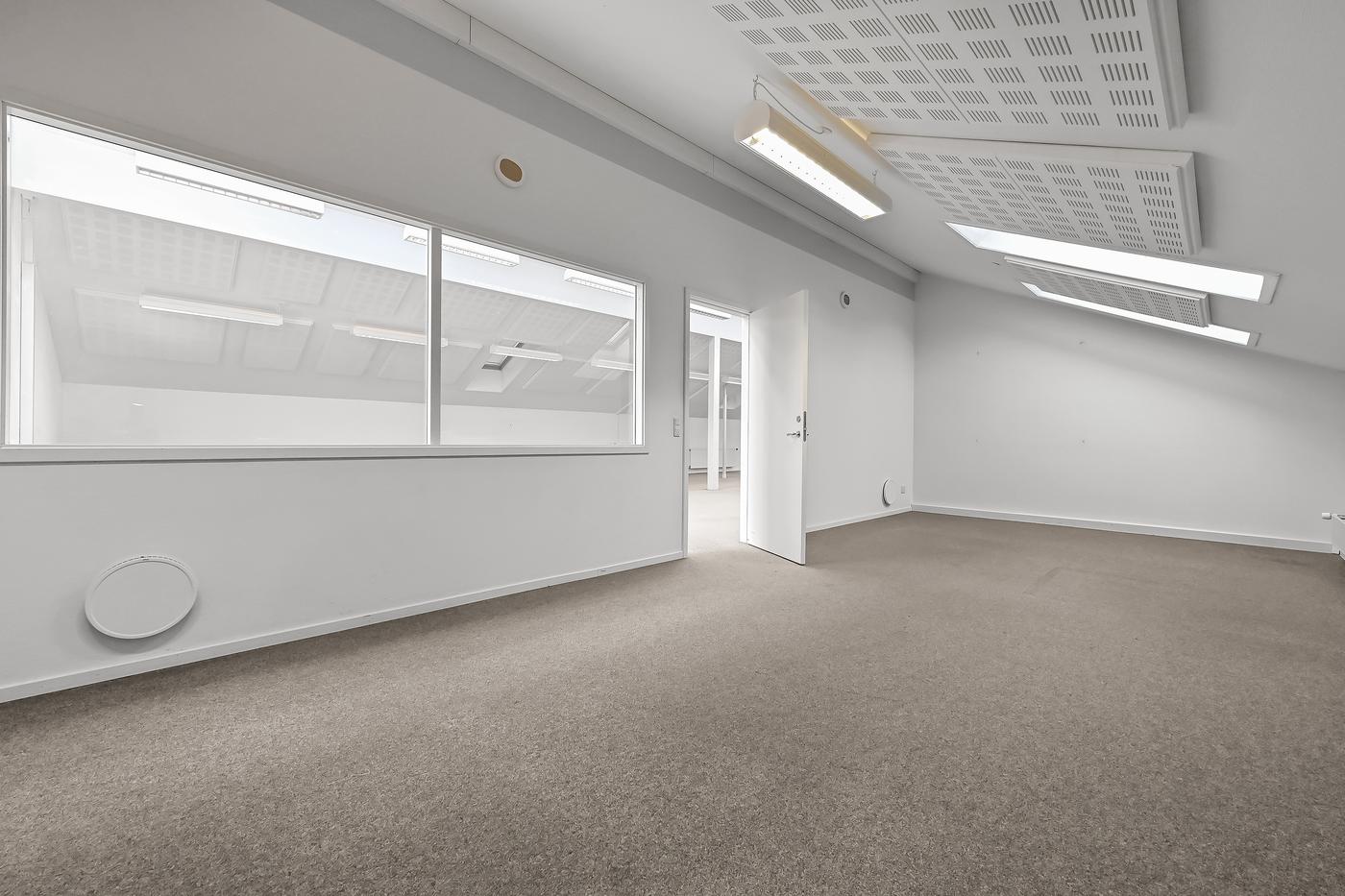 Anden sal fremstår som et stort åbent kontorlokale med et markant og behageligt lysindfald fra rytterlys i hele tagrygningen.
