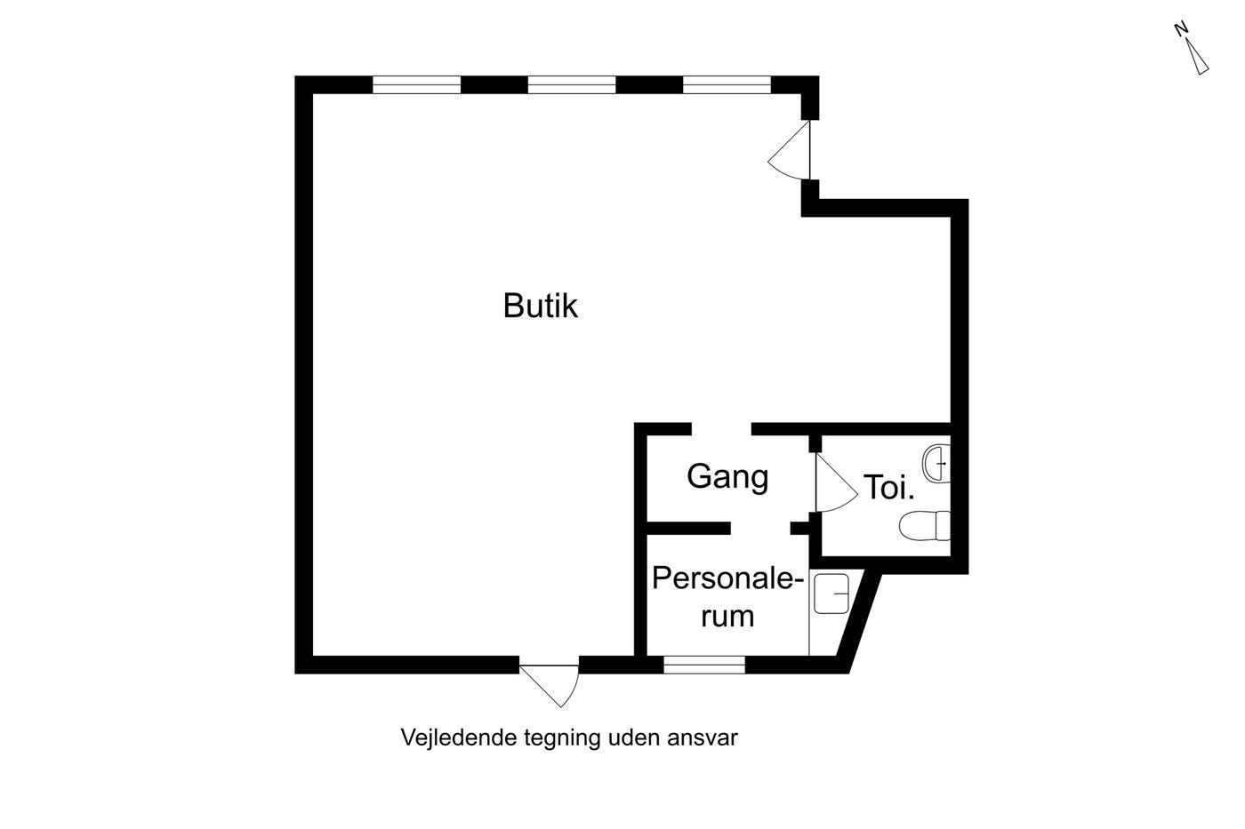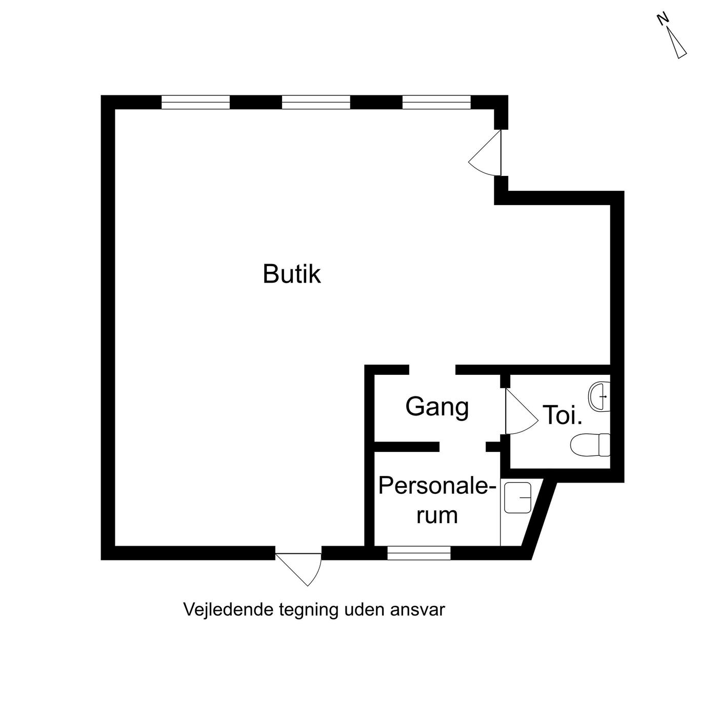 Lejemålet er indrettet som et stort regulært butikslokale med facade mod trafikeret gade og med bagudgang til privat parkeringsområde, hvor der er mulighed for vareindlevering.