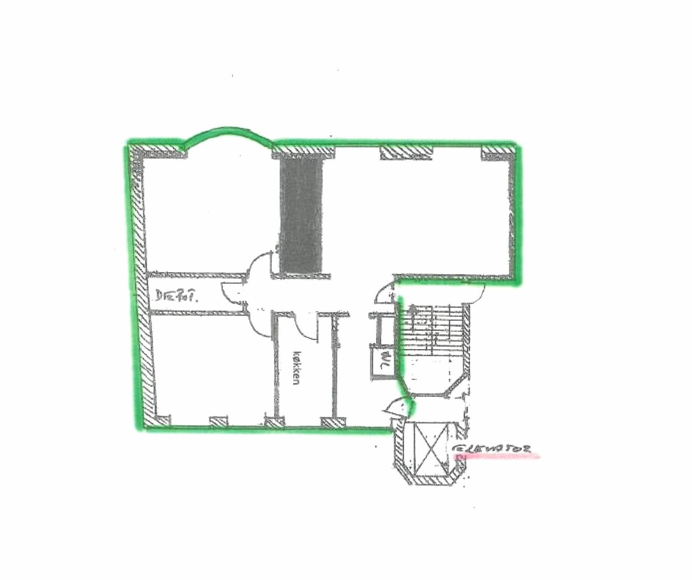 Det ledige kontor/klinik lejemål er beliggende på 1. salen og indeholder 2 gode kontorer, 1 stort mødelokale, som også kan bruges som kontor samt frokoststue med thekøkken samt toilet.