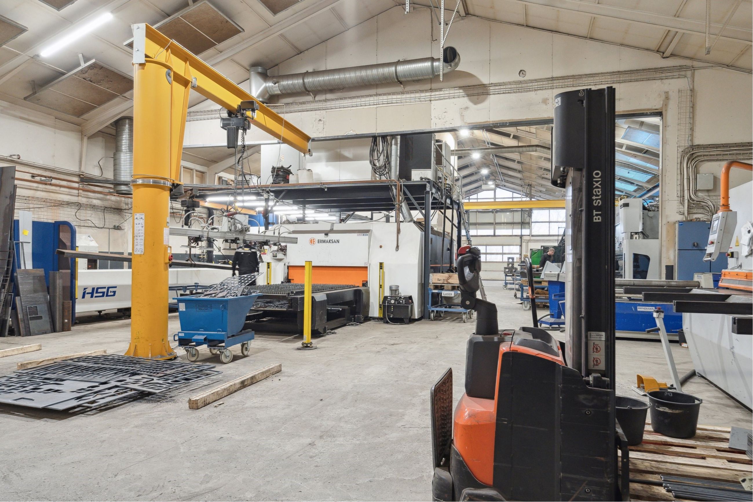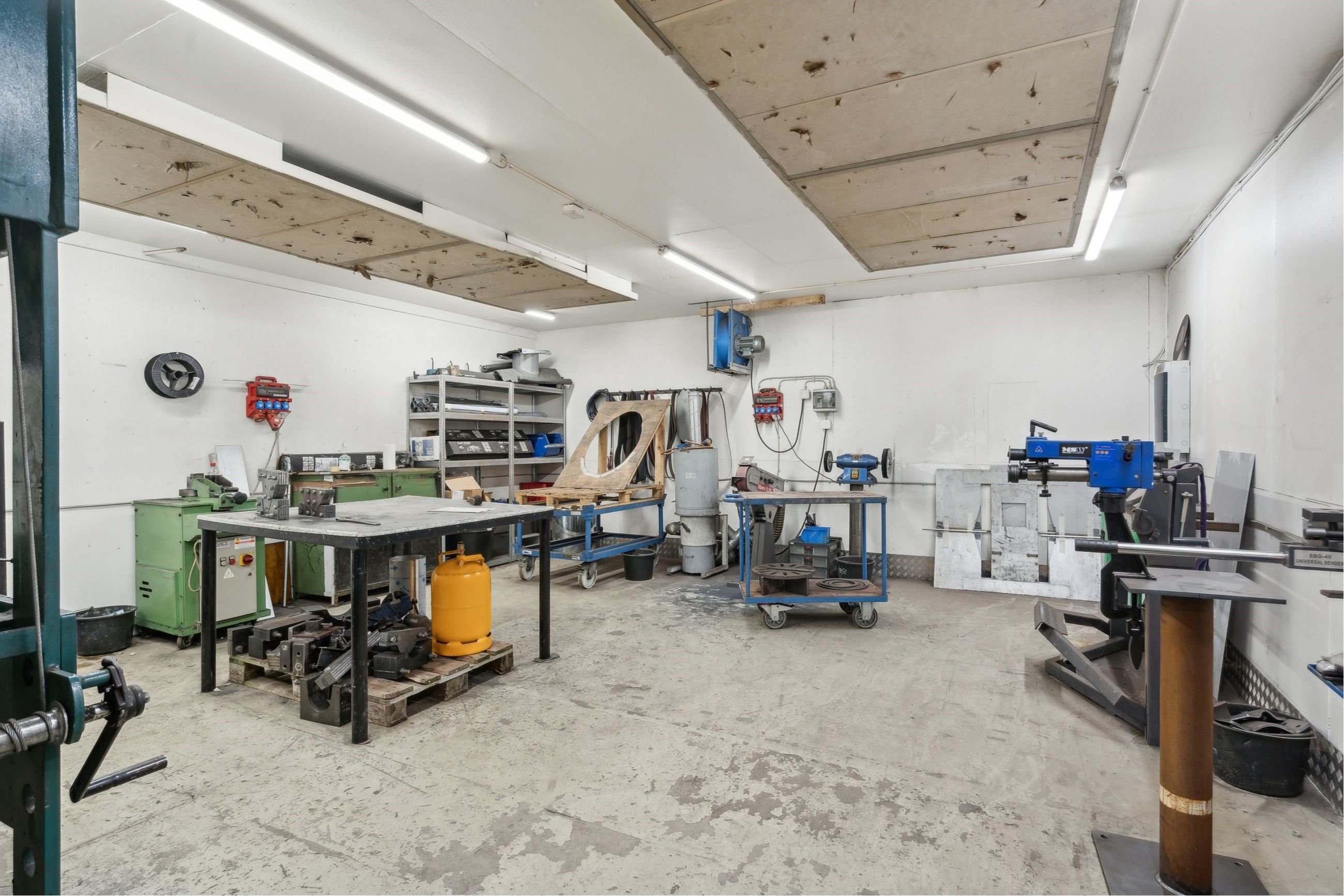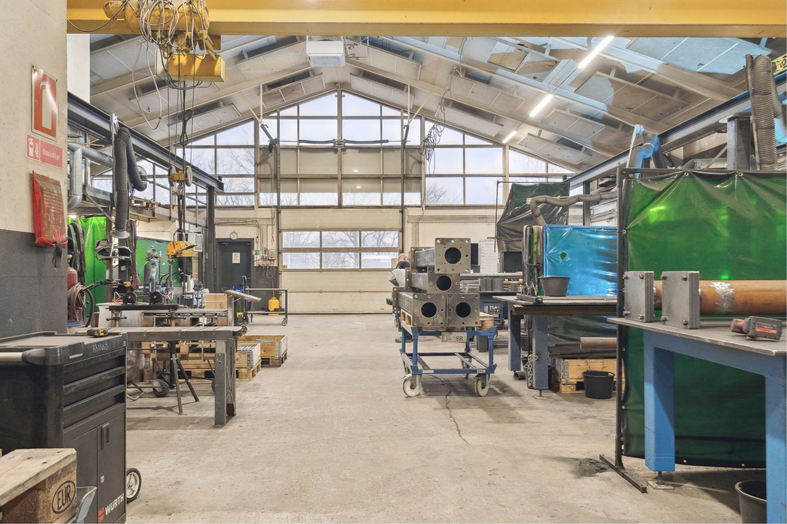 Produktionshallen er indrettet med sprøjtekabiner samt udsugning. Der er ligeledes port i begge gavle med en højde på cirka 4,5 meter.