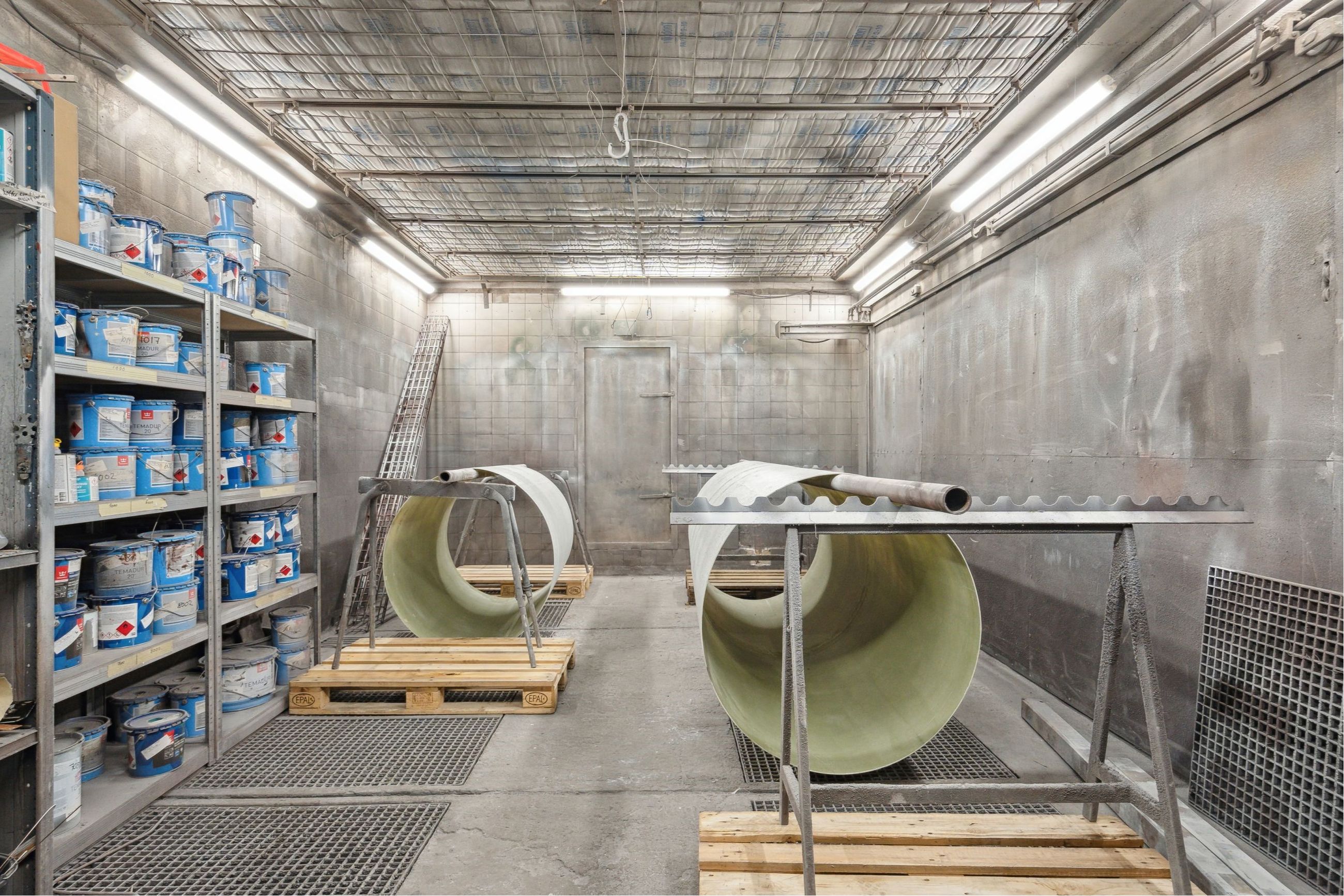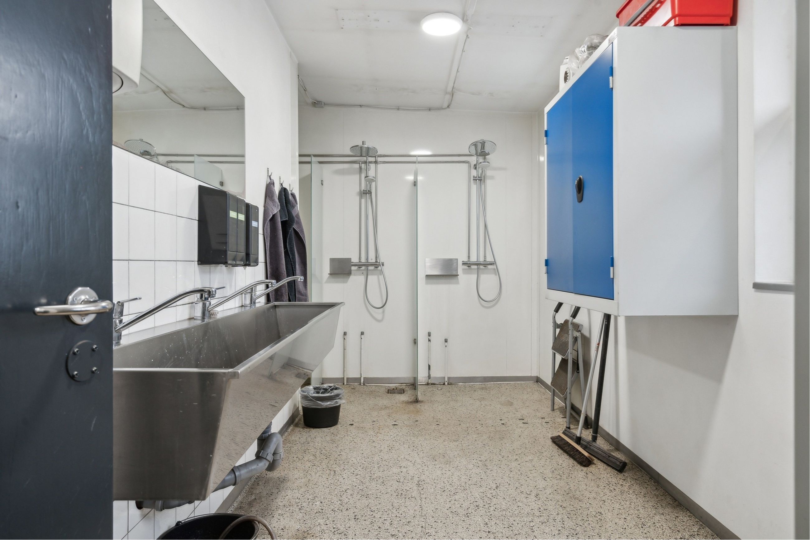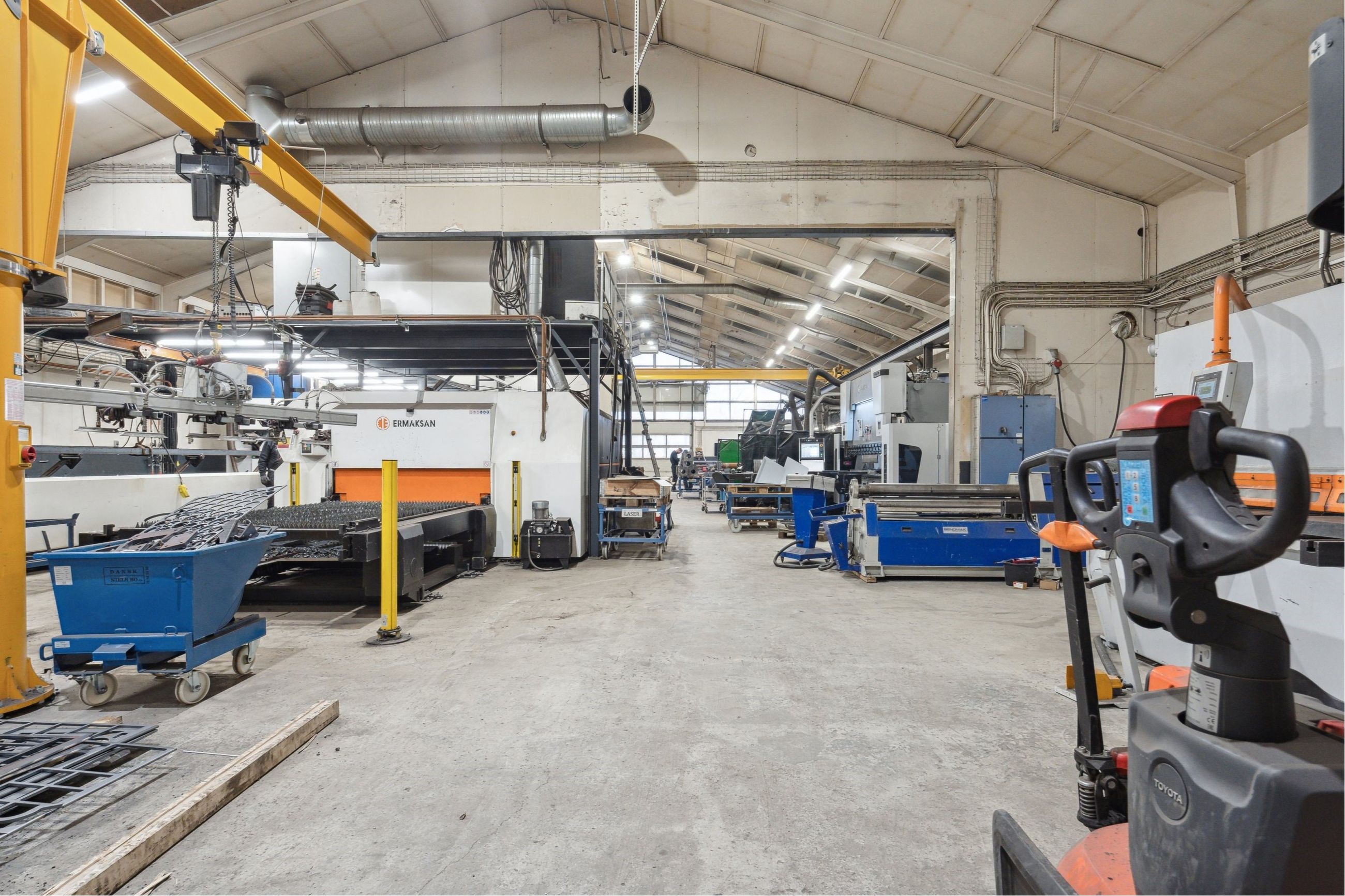 Produktionshallen er indrettet med sprøjtekabiner samt udsugning. Der er ligeledes port i begge gavle med en højde på cirka 4,5 meter.