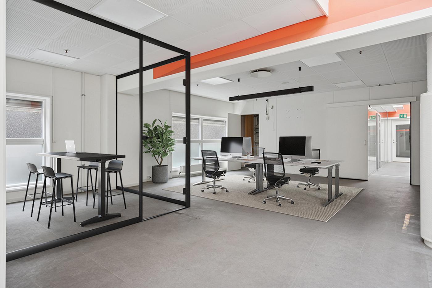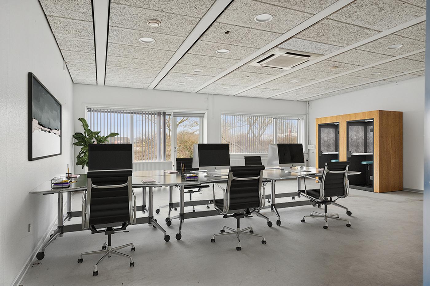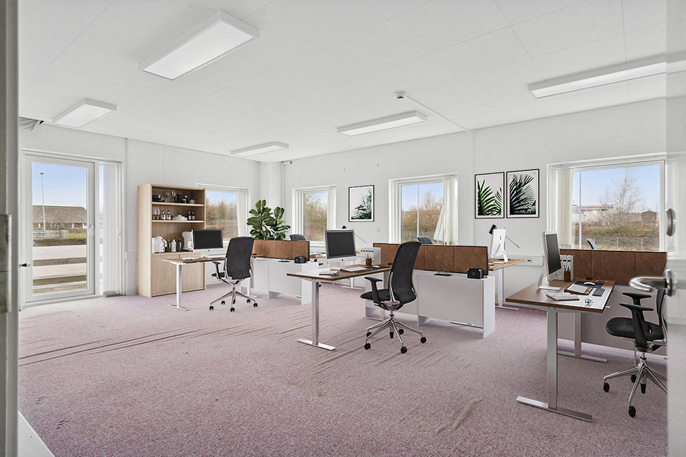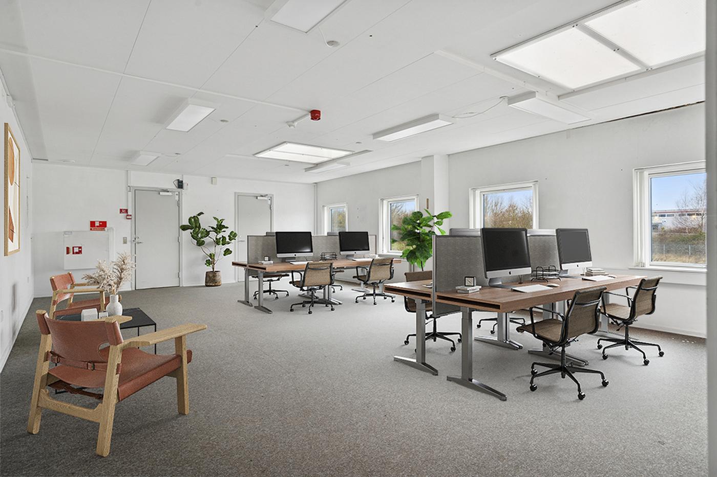 Kontorarealerne fremstår lyse og velfungerende med gode vinduespartier, ventilation og mulighed for fleksibel indretning efter lejers behov. Herudover findes møde- og personalefaciliteter, som bidrager til et velfungerende arbejdsmiljø.