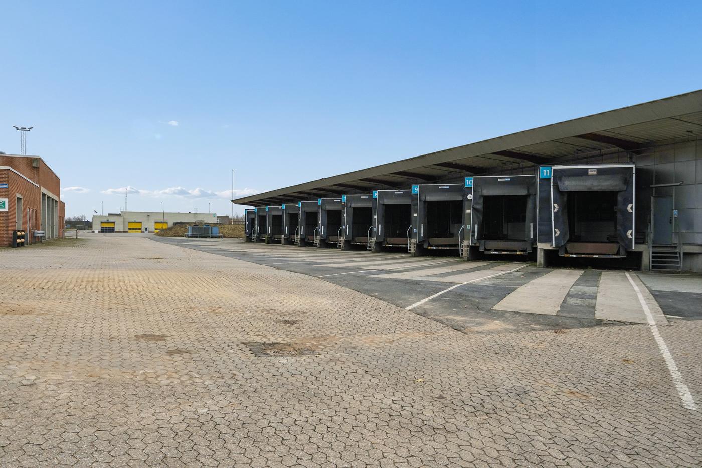 Lagerarealerne har høj loftshøjde, solide gulve og fleksible indretningsmuligheder. Ejendommen er forsynet med adskillige porte og læsseramper samt overdækkede lastområder, hvilket muliggør effektiv varemodtagelse og -afsendelse. Den store, befæstede og indhegnede grund giver gode forhold for parkering, intern trafik, manøvrering og eventuelt udendørs oplag.