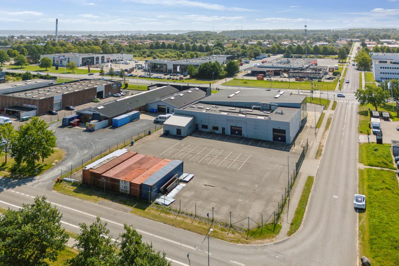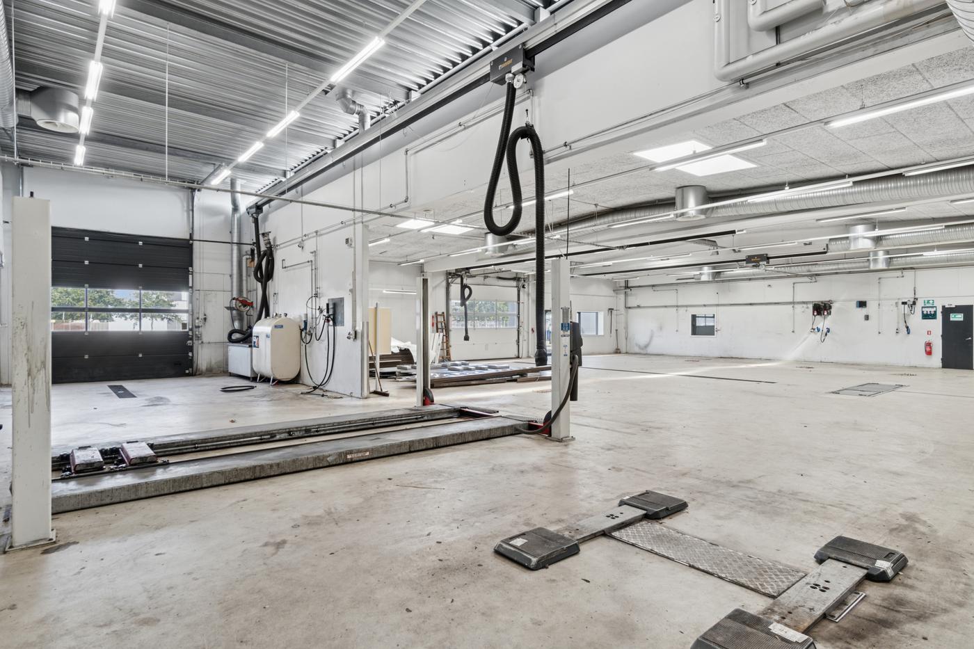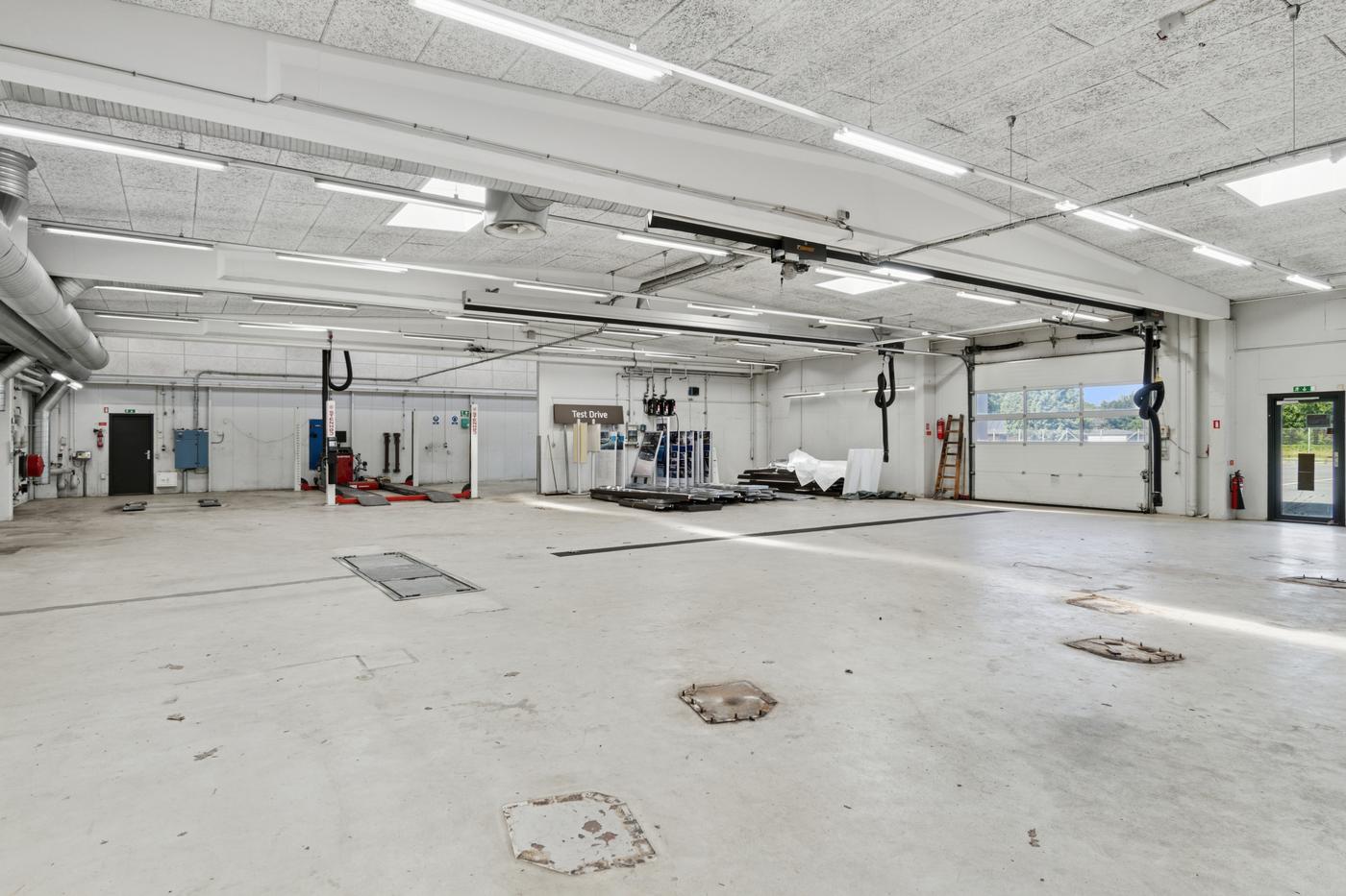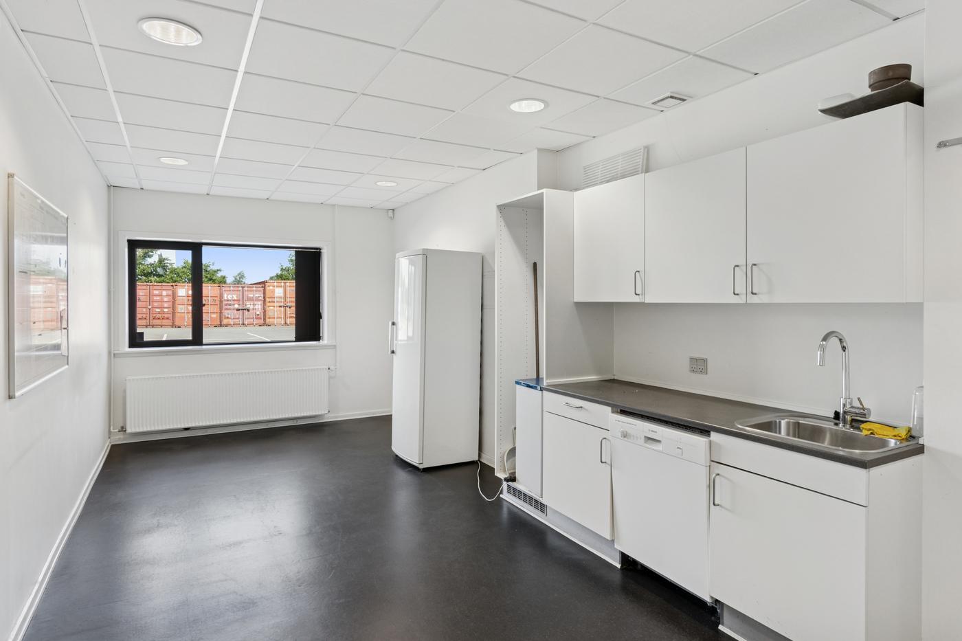 Midtersektionen rummer kontor, kundemodtagelse og personalefaciliteter med køkken/kantine og toiletter. Bagerst findes værksted og lager med betongulv, troldtektlofter, to porte og loftshøjde på 4-5 meter samt omklædning og bad.