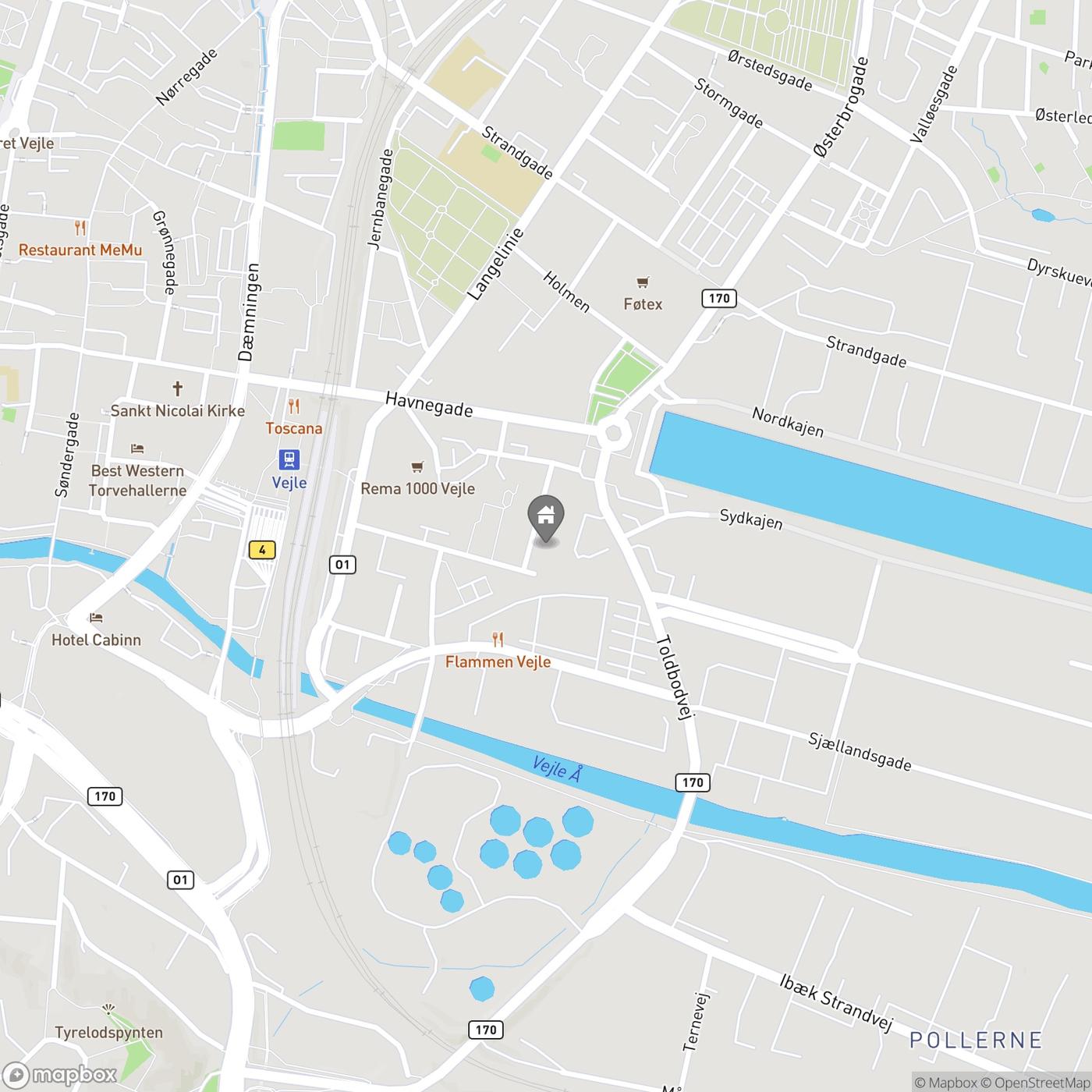 Der er gode parkeringsforhold tæt ved lejemålet, og det ligger kun 200 meter fra Vejle Banegård og Rutebilstation.