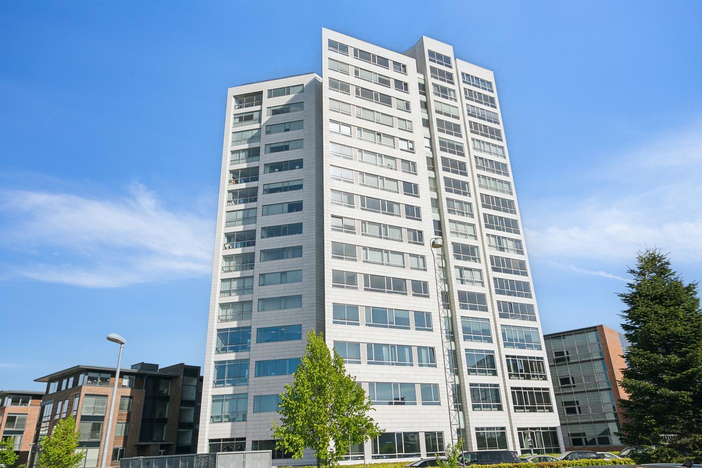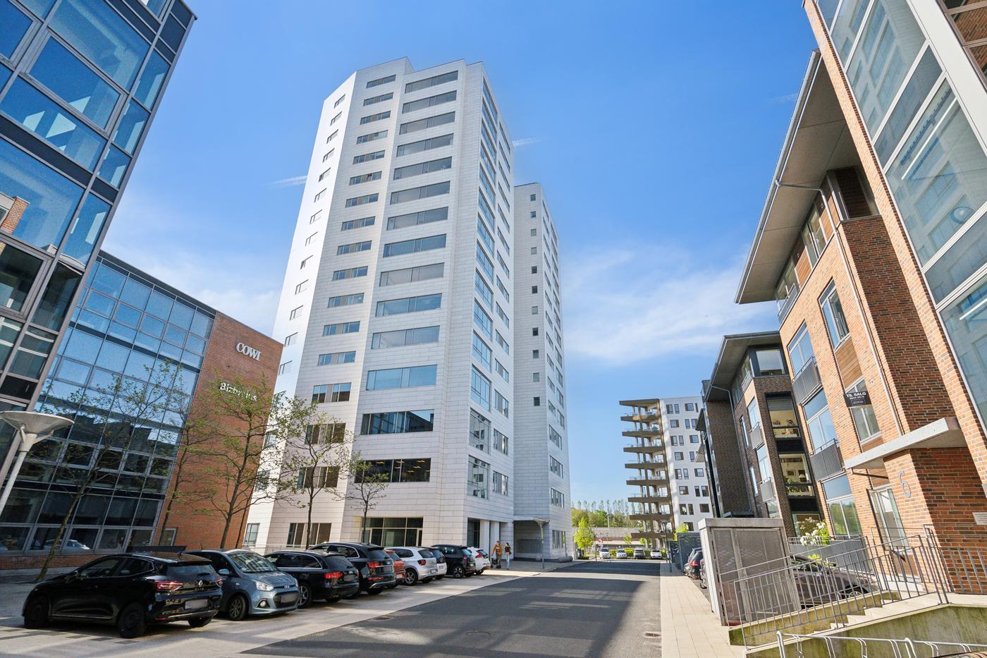 Lejemålet er beliggende i stueetagen af den ikoniske 16-etagers bygning "Den Hvide Facet" i Vejle. Ejendommen, som blev opført i 2007, fremstår lys og moderne overalt.