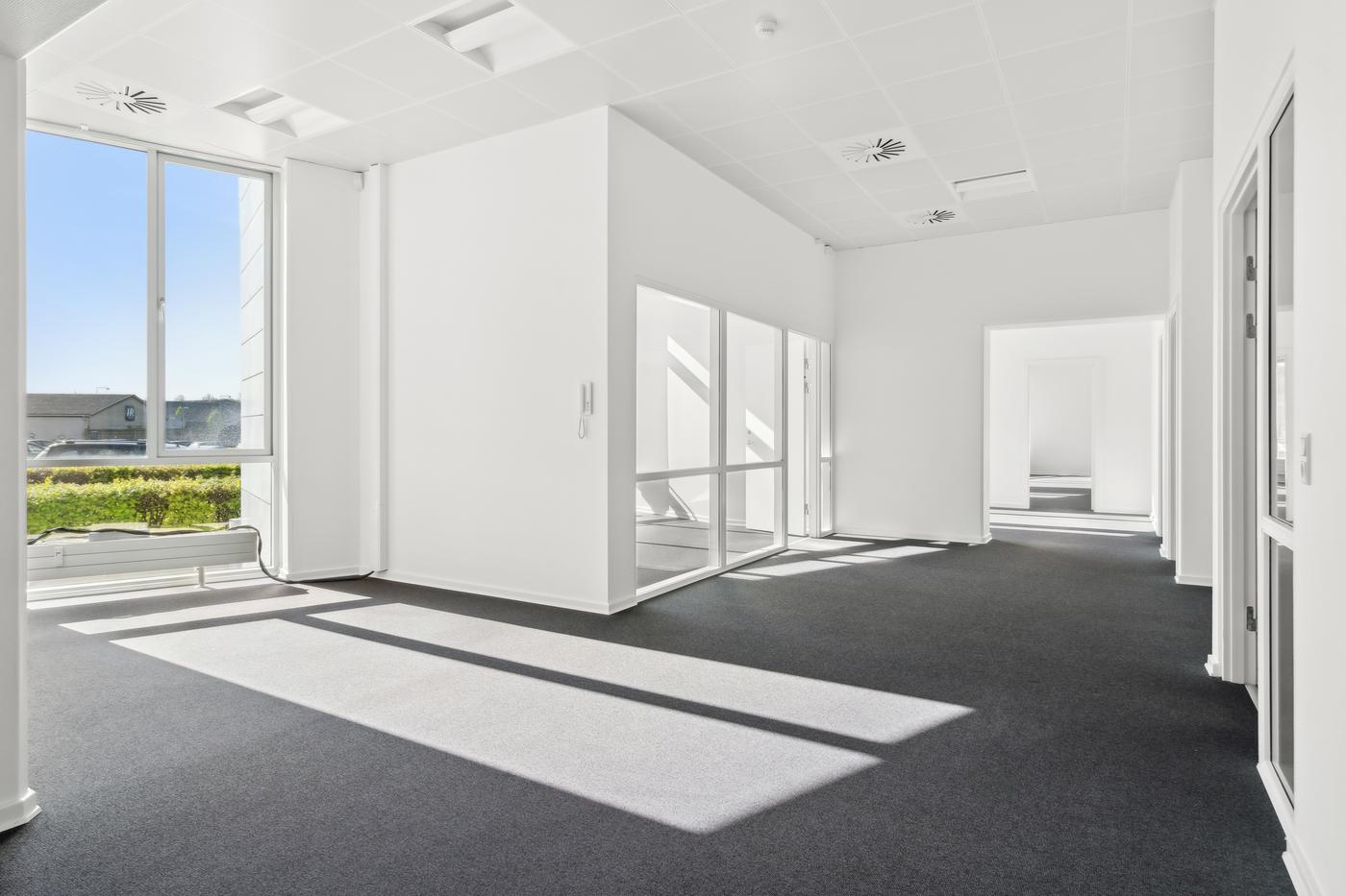 Lejemålet byder på en lille entré eller et venteområde. Derudover består det af flere lyse og åbne kontorer, der samlet set kan rumme omkring 15 medarbejdere.