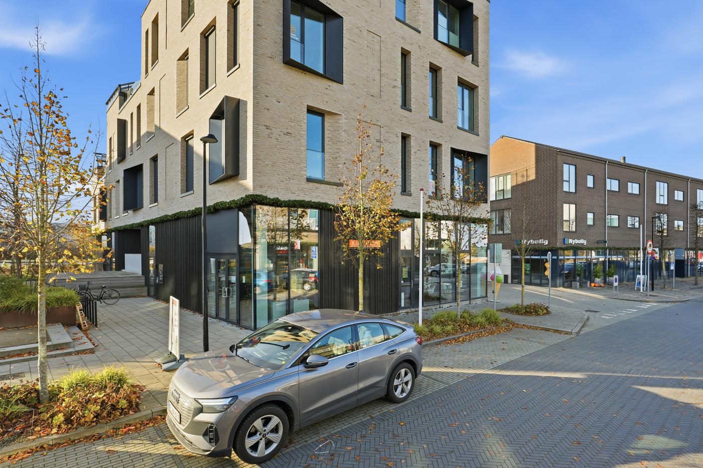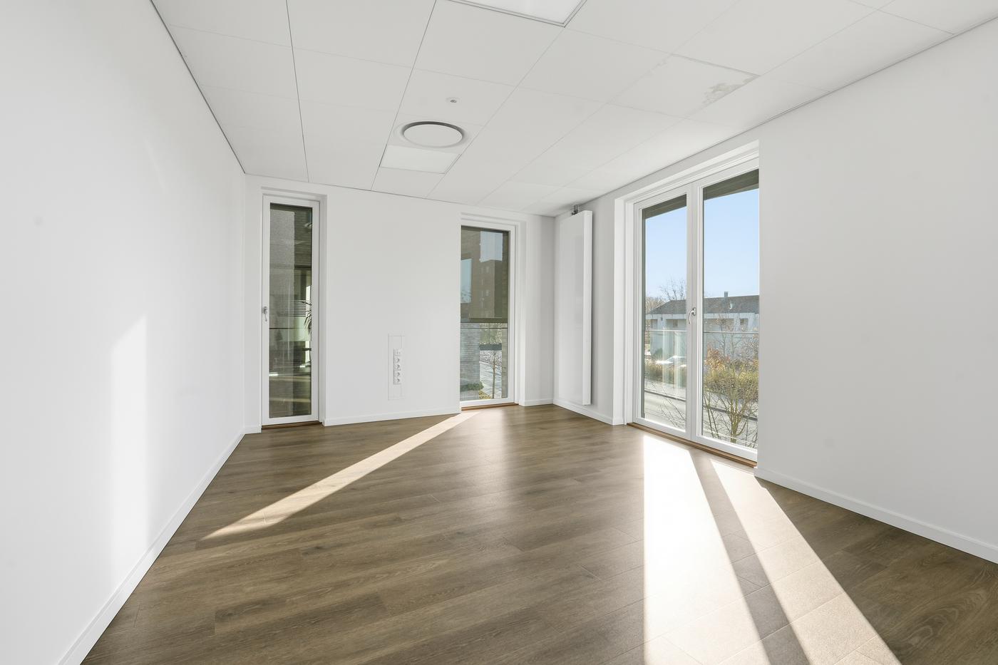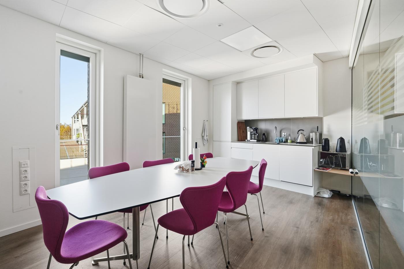 Lejemålet er lyst og indbydende med store vinduespartier, der giver et flot naturligt lysindfald. Lokalet er en del af et moderne kontorfællesskab med stilrene fællesarealer.