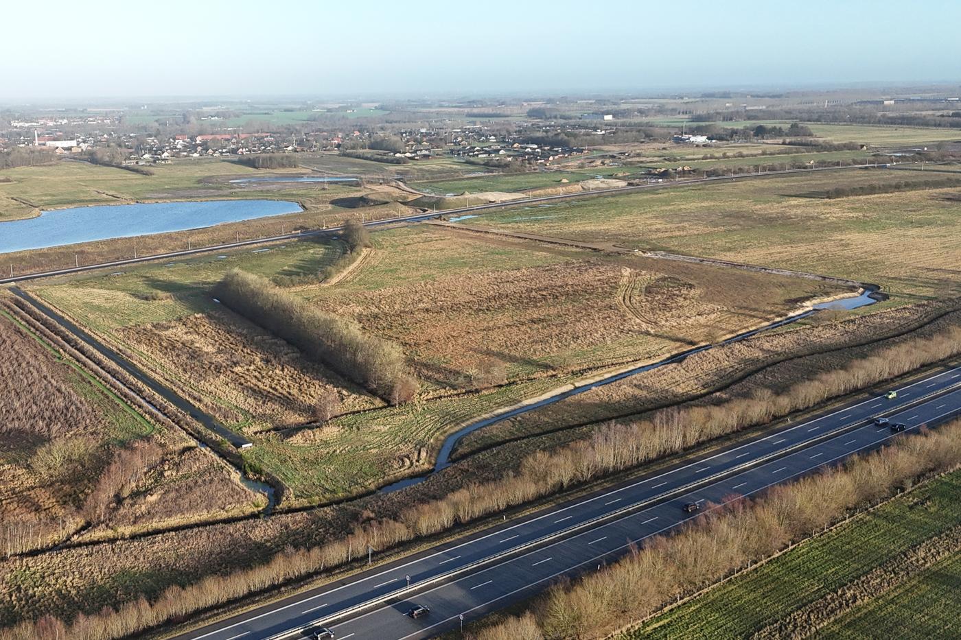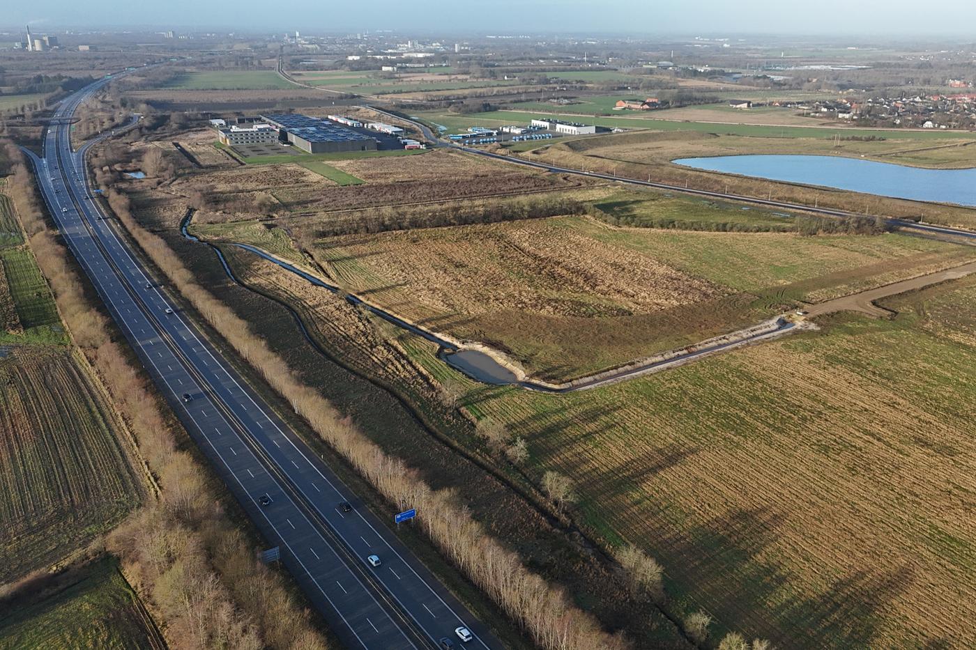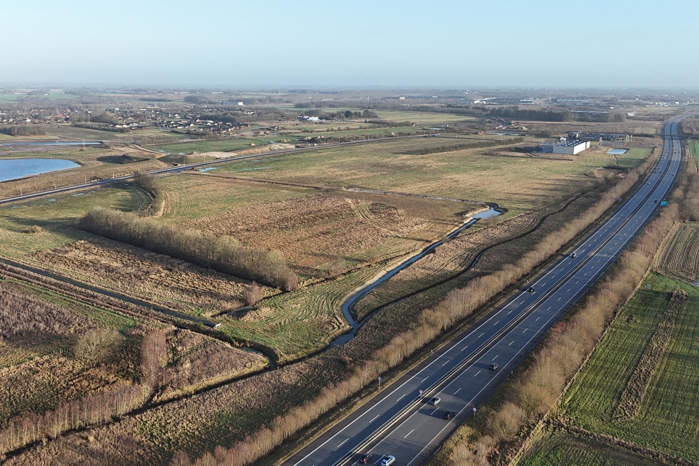 Grønne elementer: Krav om trærækker mellem erhvervsgrunde (nord-syd) og grøn buffer/klimaareal mod motorvejen; beplantning med biodiversitetsstøttende arter.