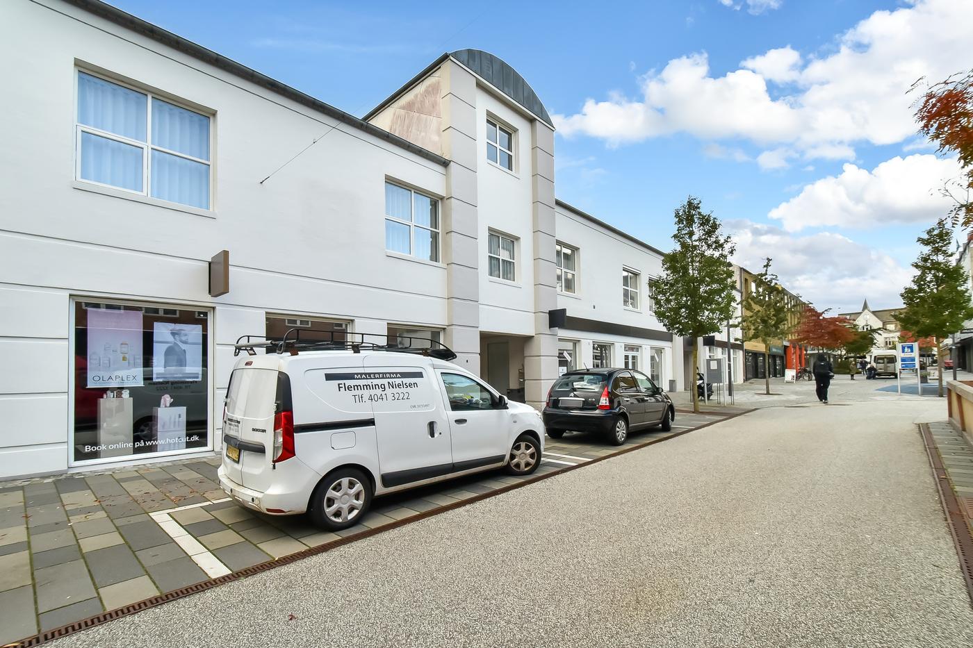 Attraktivt butikslejemål udlejes med mulighed for leje af yderligere lagerfaciliteter Stort butikslejemål i det centrale Herning udlejes. Lejemålet indeholder et stort åbent butiksområde med vindfang samt 4 stk. store facadevinduer ud til Søndergade, hvilket giver en stor mulighed for eksponering overfor de mange forbipasserende i området.
