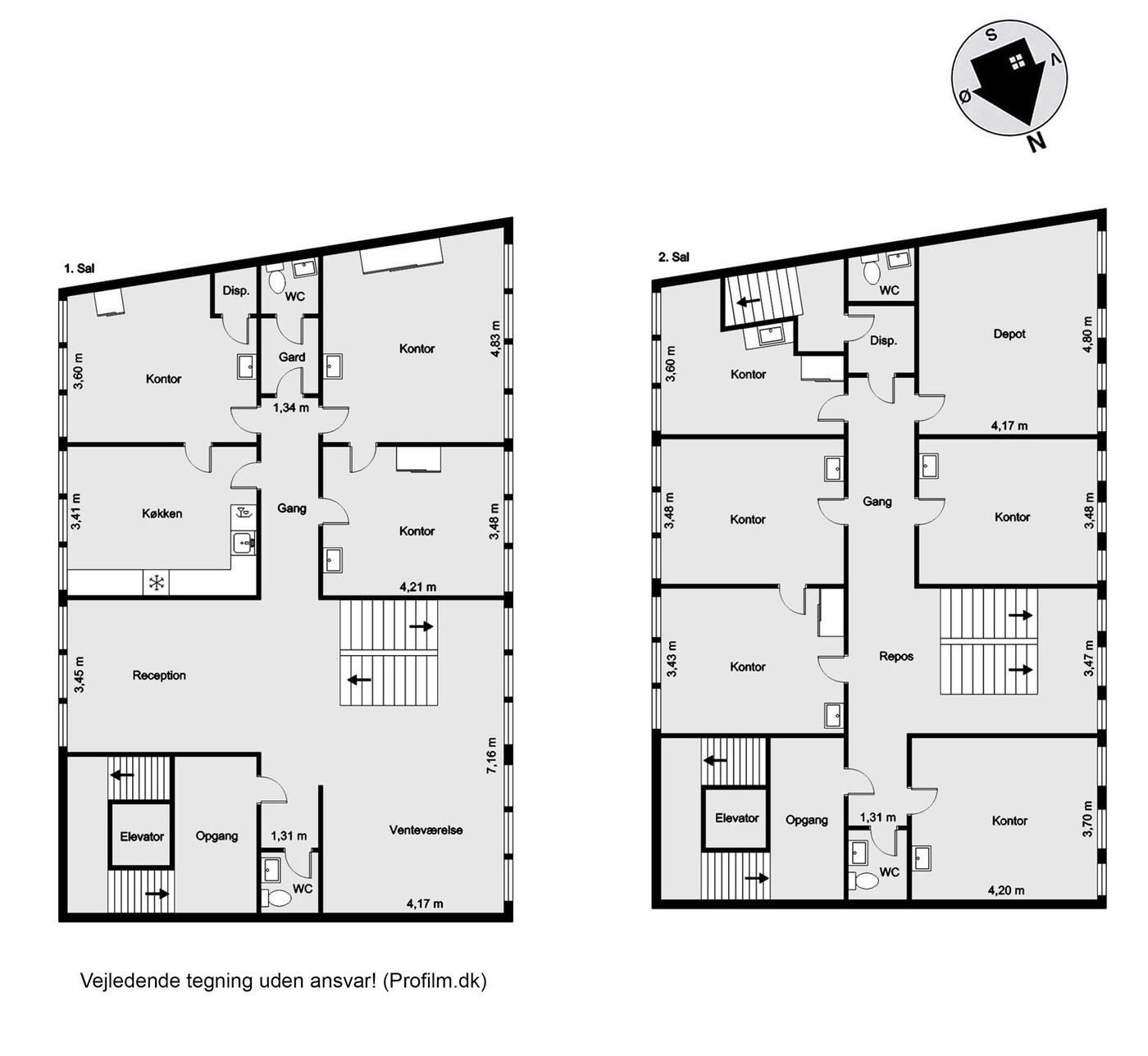 Via indgang fra Torvet ad trappe eller elevator får den kommende lejer adgang til 3 x 176 m² kontor-/kliniklokaler. Der er mulighed for i et vist omfang at opdele lejemålet i mindre enheder.
