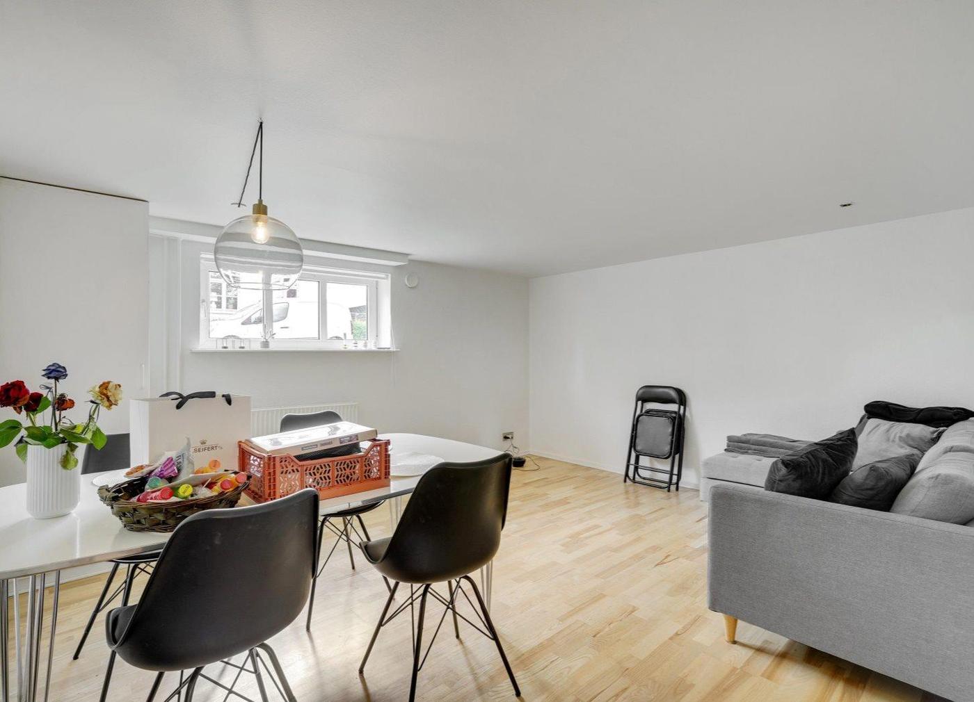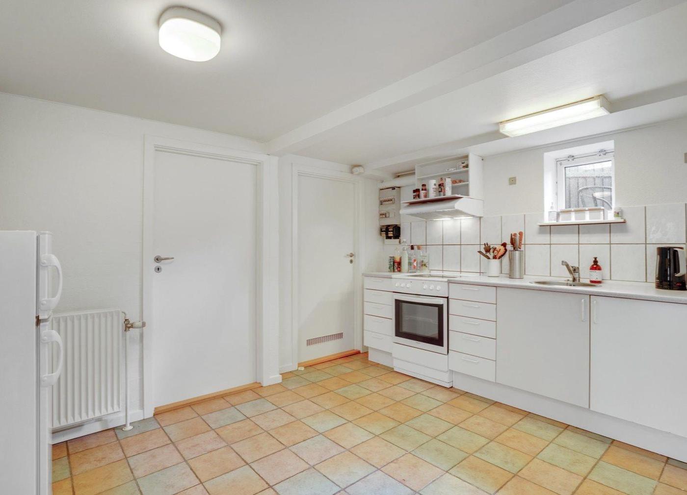 Lejligheden i kælderen består af 2 værelser og stue, badeværelse samt køkken med spiseplads.