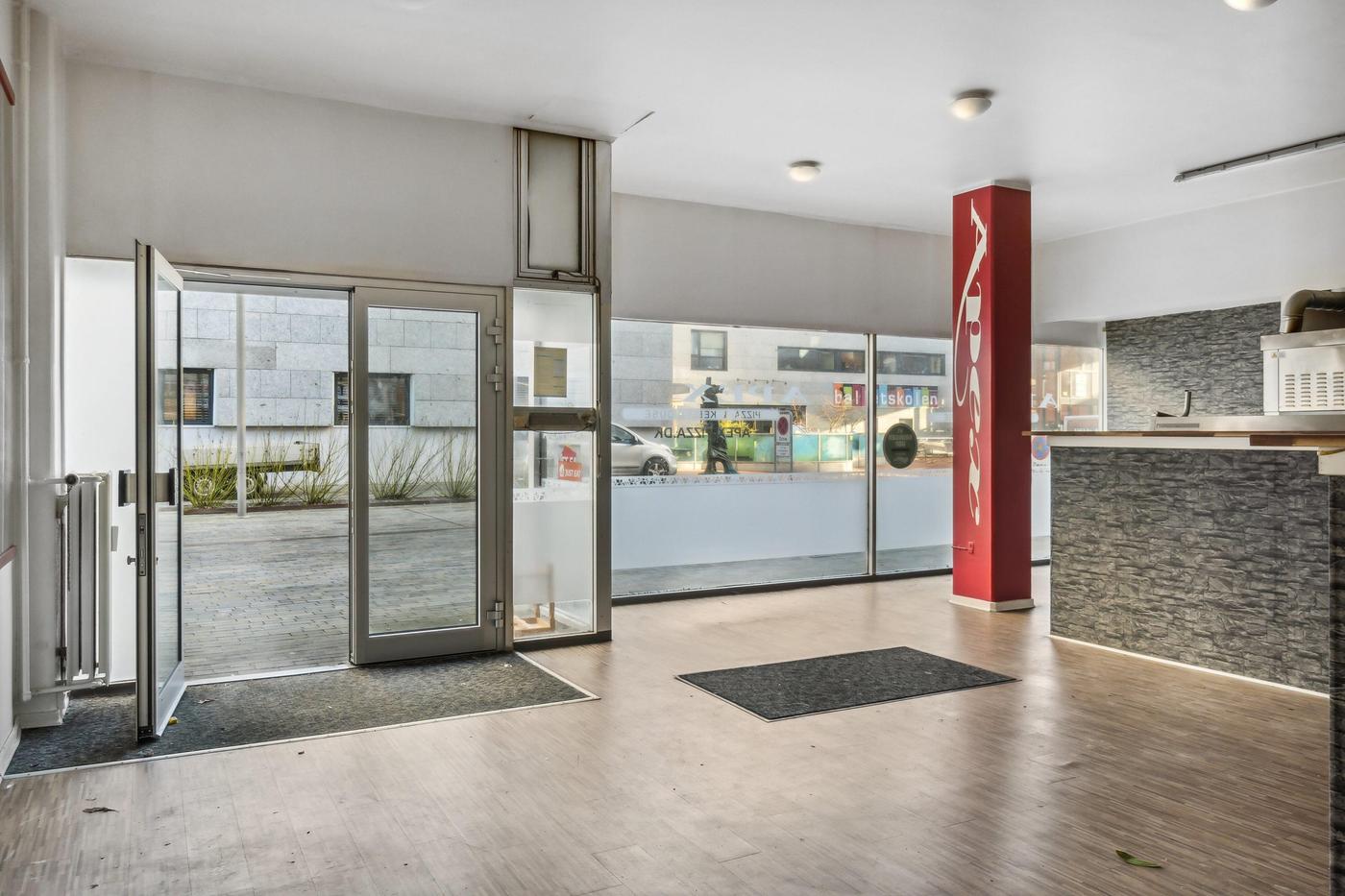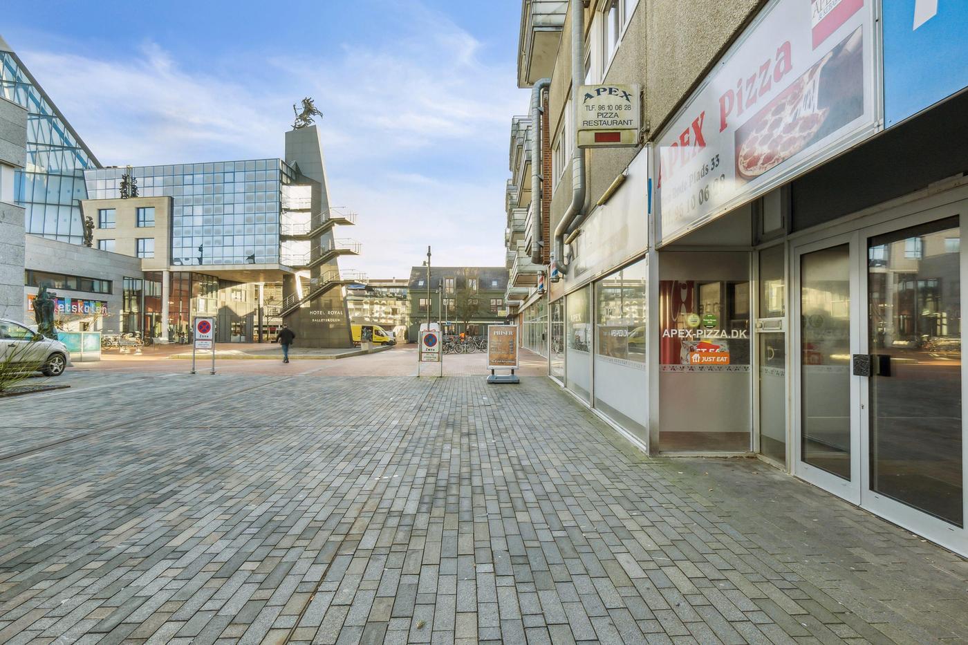 Lejemålet er beliggende på Den Røde Plads - med Musikteatret, Hotel Royal og flere andre gode og spændende spisesteder som nærmeste naboer.