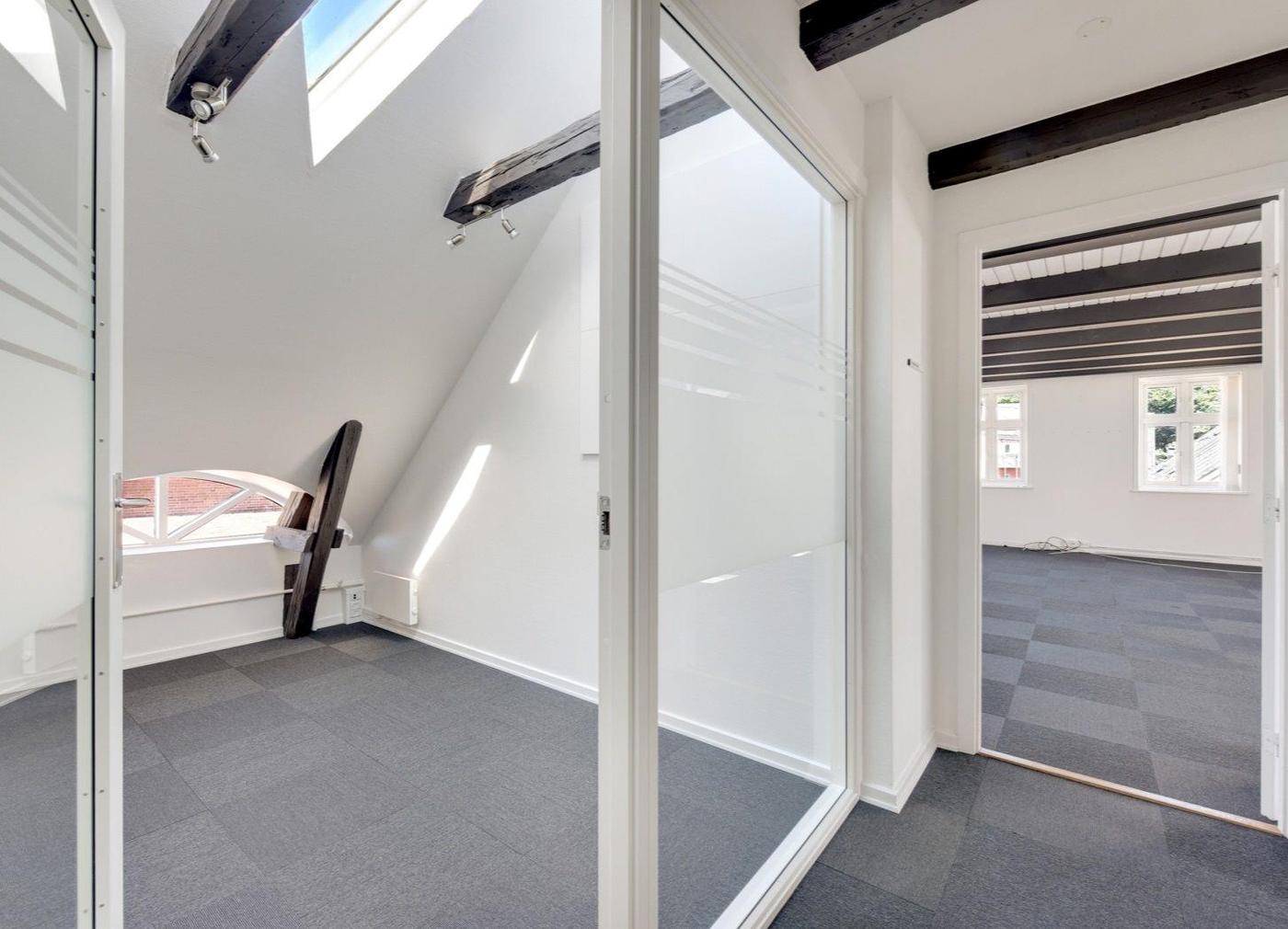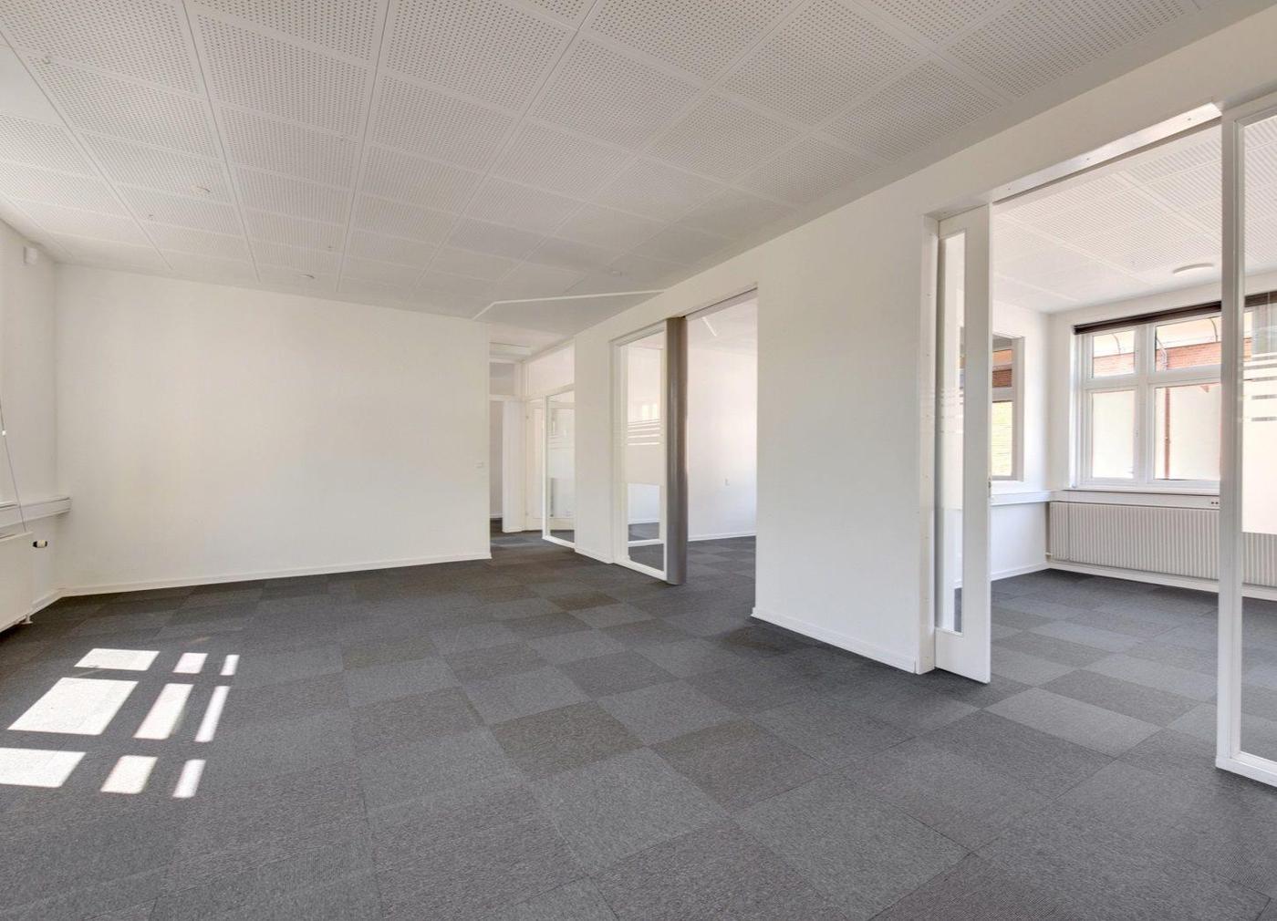 Indrettet med flere åbne kontormiljøer, hyggelige mødelokaler, kantine, flere separate kontorer samt toiletter m.m.