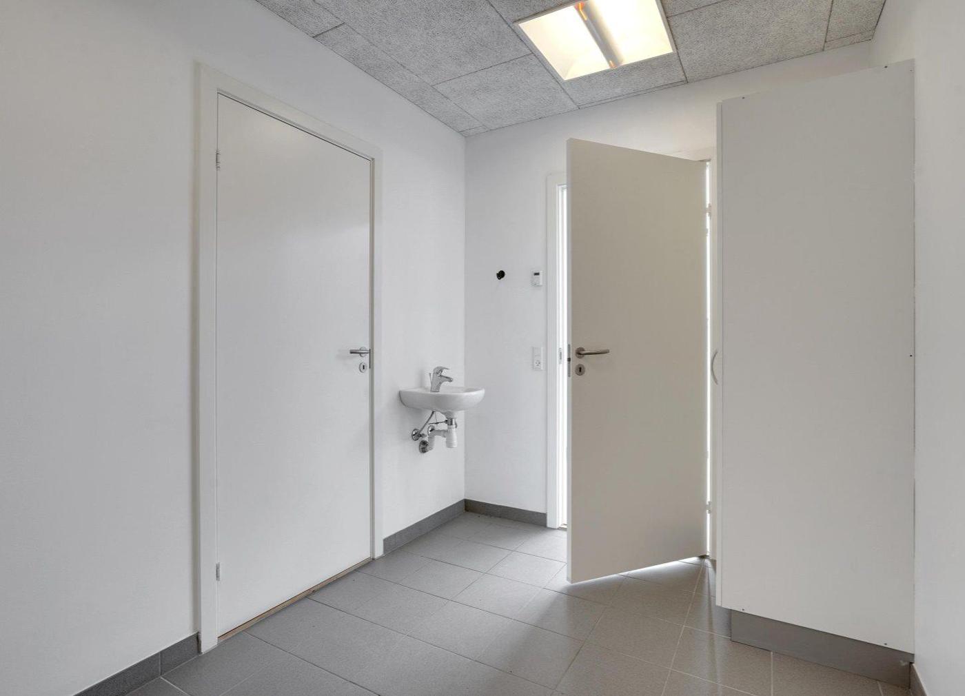Lejemålet er ialt 47 m², der indeholder fint lagerrum med port - kan evt. bruges til mindre værksted / lager (uopvarmet). Hertil pæn indgang / fordelingsrum med adgang til mindre kontor med thekøkken, toilet- og badefaciliteter samt til værkstedet.