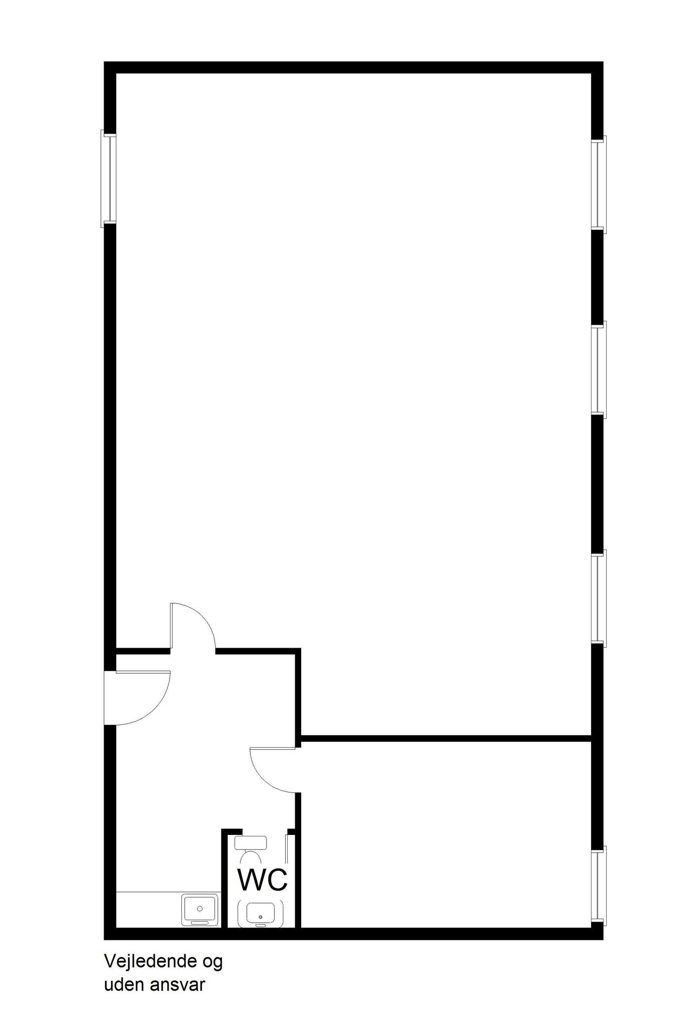 Lejemålet er ialt 113 m², der består af et stort lokale med godt lysindfald fra flere store vinduer, et separat kontor samt køkken- og toiletfaciliteter.