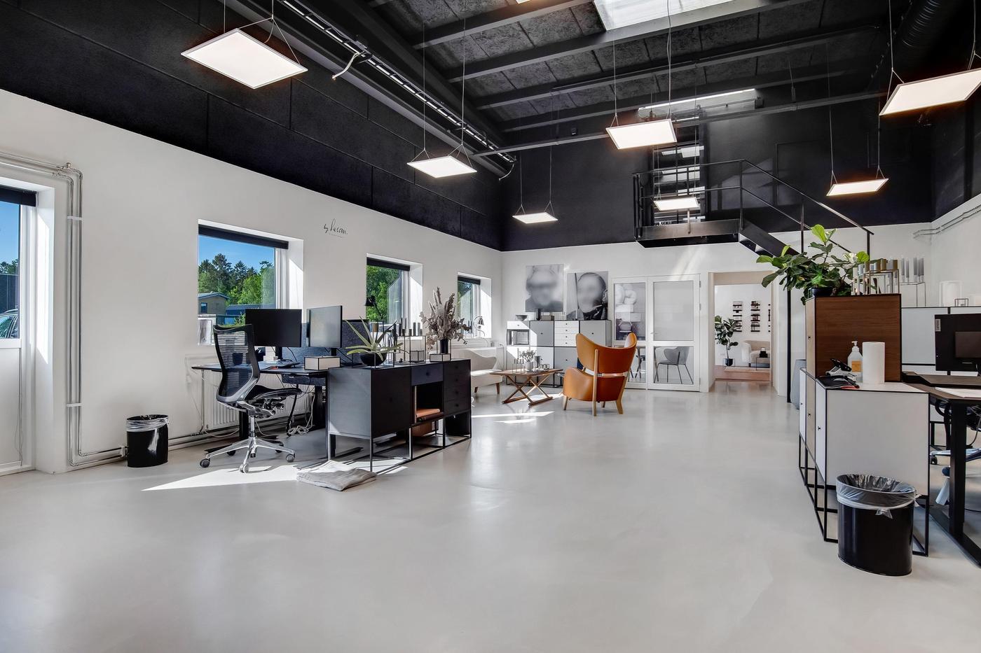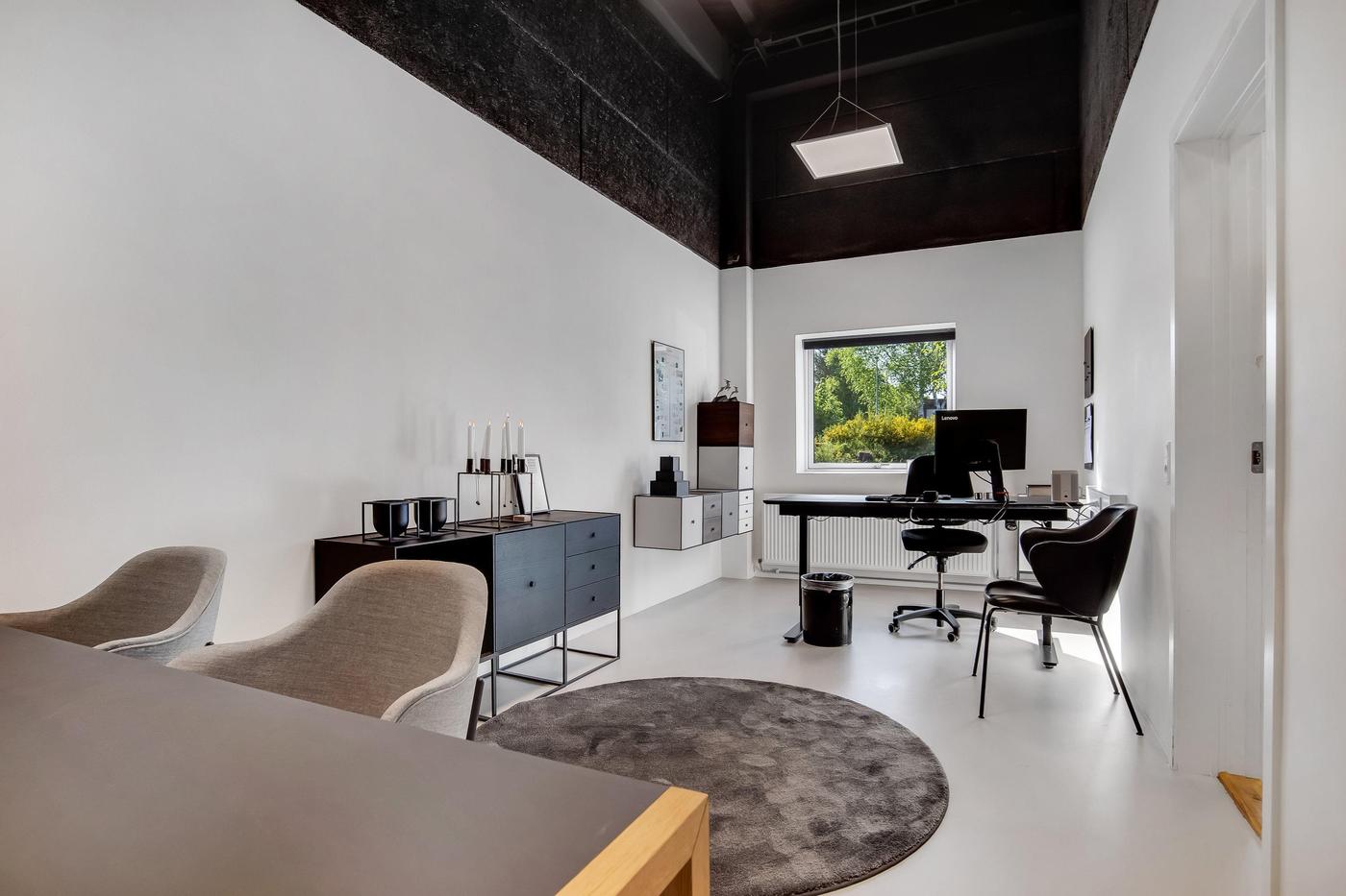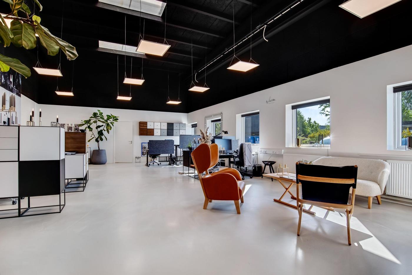 Administrationsdelen udgør 280 m² hertil showroom og kælder.