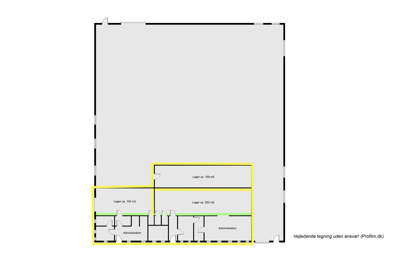 Som nævnt er der mulighed for at leje administrationsdelen på 280 m², og ellers tilvælge enten 100 / 200 / 300 m² lager, alt efter behov.