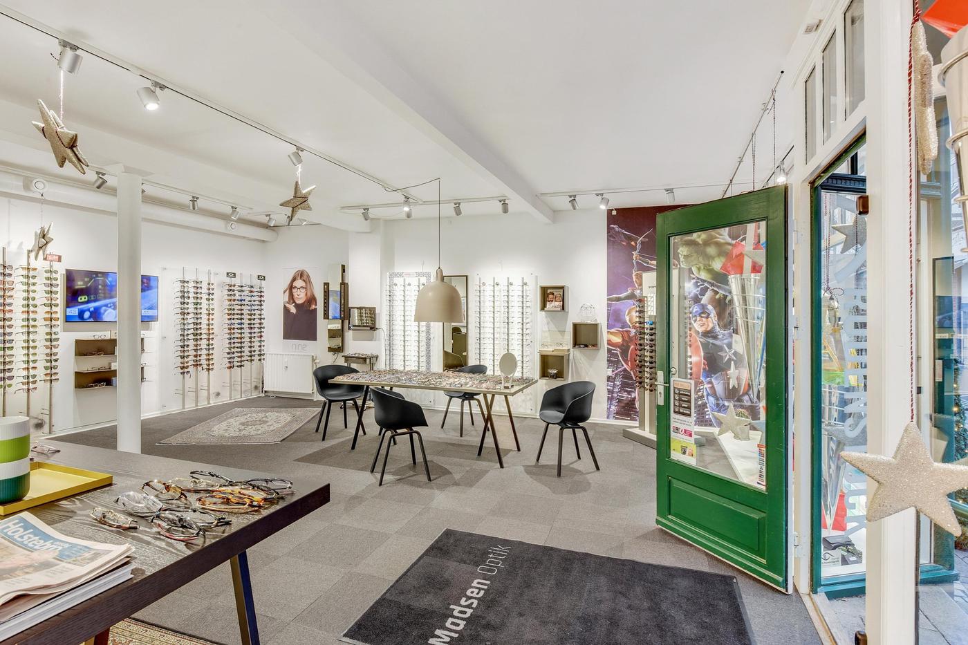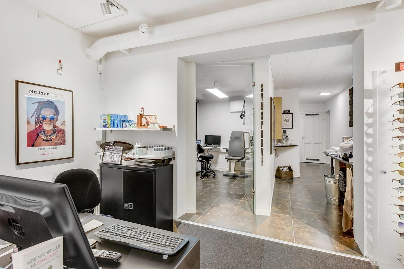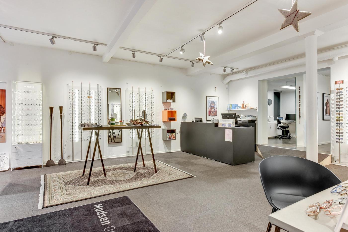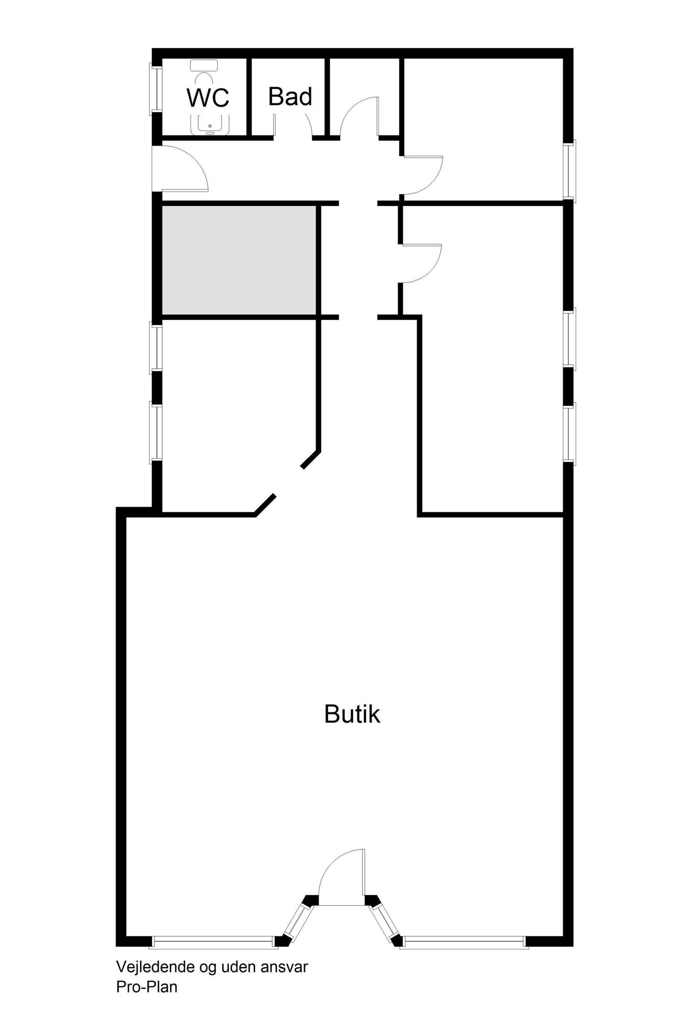 Lejemålet indeholder godt udstillinglokale, baglokale/personalerum, kontor, toilet og baggang med udgang til bagsiden af bygningen.