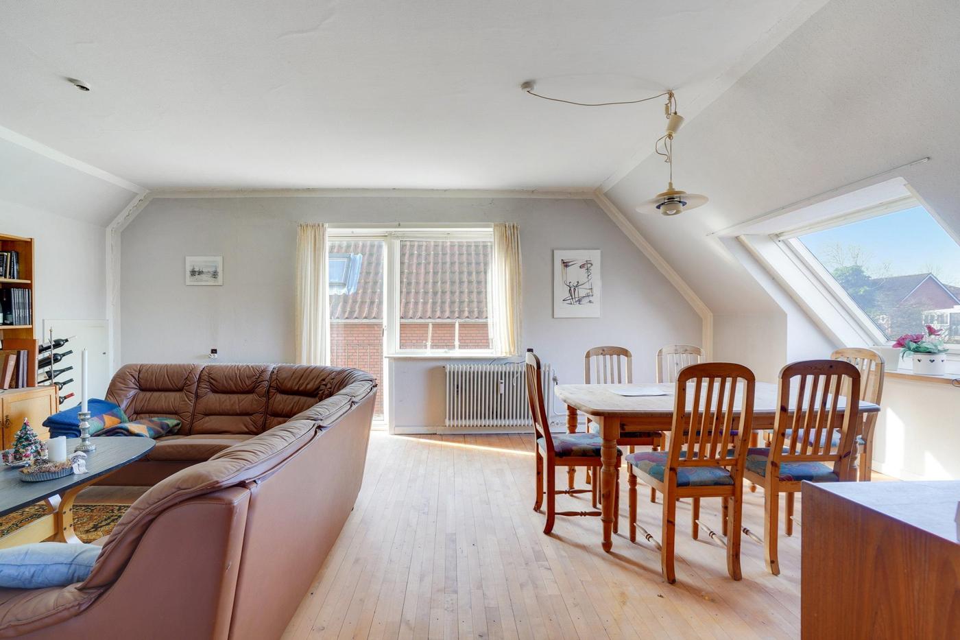 Lejligheden på 1. sal er indrettet med god lys stue, køkken/alrum, soveværelse og badeværelse.