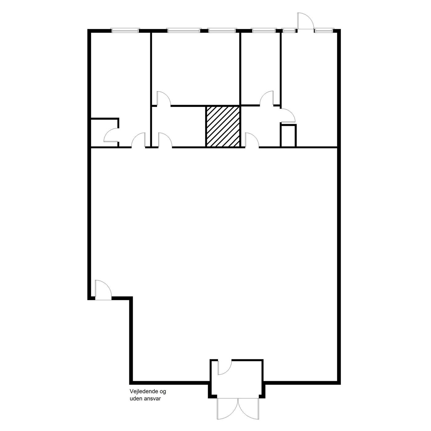 Lejemålet er indrettet med et godt stort regulært butikslokale, der også kunne benyttes som klinik eller som et større kontor. Hertil separat kontor samt et frokostrum med toilet.