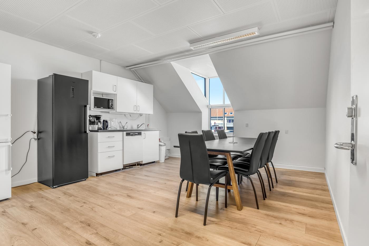 Hvis det ønskes, giver kontorhotellets gode fællesfaciliteter mulighed for social omgang med husets andre lejere.