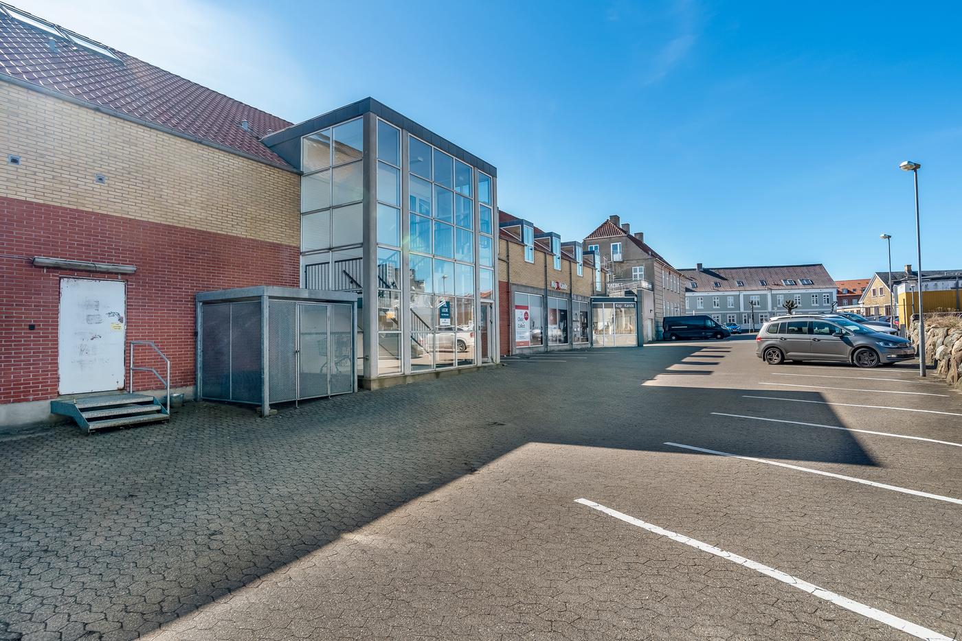 Ejendommen er beliggende i Thisted centrum, tæt på kirken, banegården, gågaden og ved et stort parkeringsområde ved SuperBrugsen.
