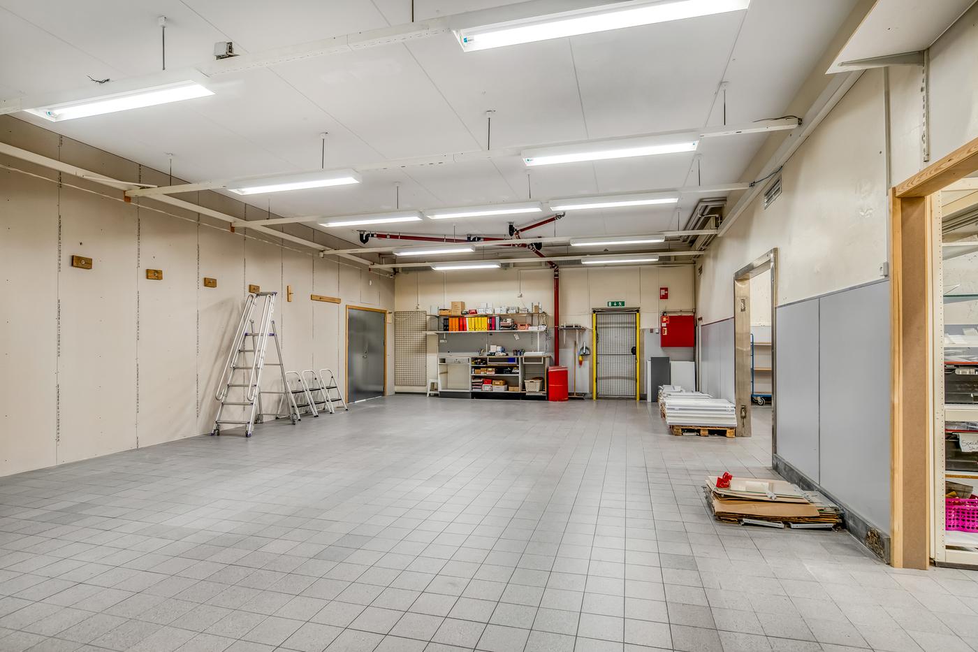 Lejemålet inkluderer også et stort lagerlokale, med tilhørende mindre port, der egner sig godt til en smidig varebehandling. Lagerpladsen er ideel for virksomheder, der kræver et større varelager. Det vil fx være oplagt for detailhandel, hvor den hurtige tilgængelighed af varer er afgørende.