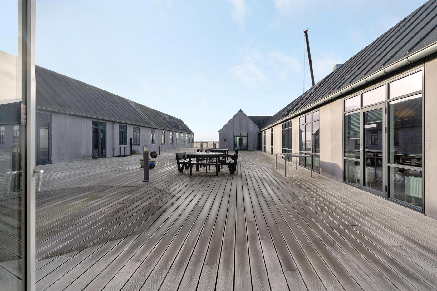 Der er ligeledes adgang til stor tagterrasse (fælles med øvrige lejere i bygningen), hvorfra der er skøn udsigt over fjorden.