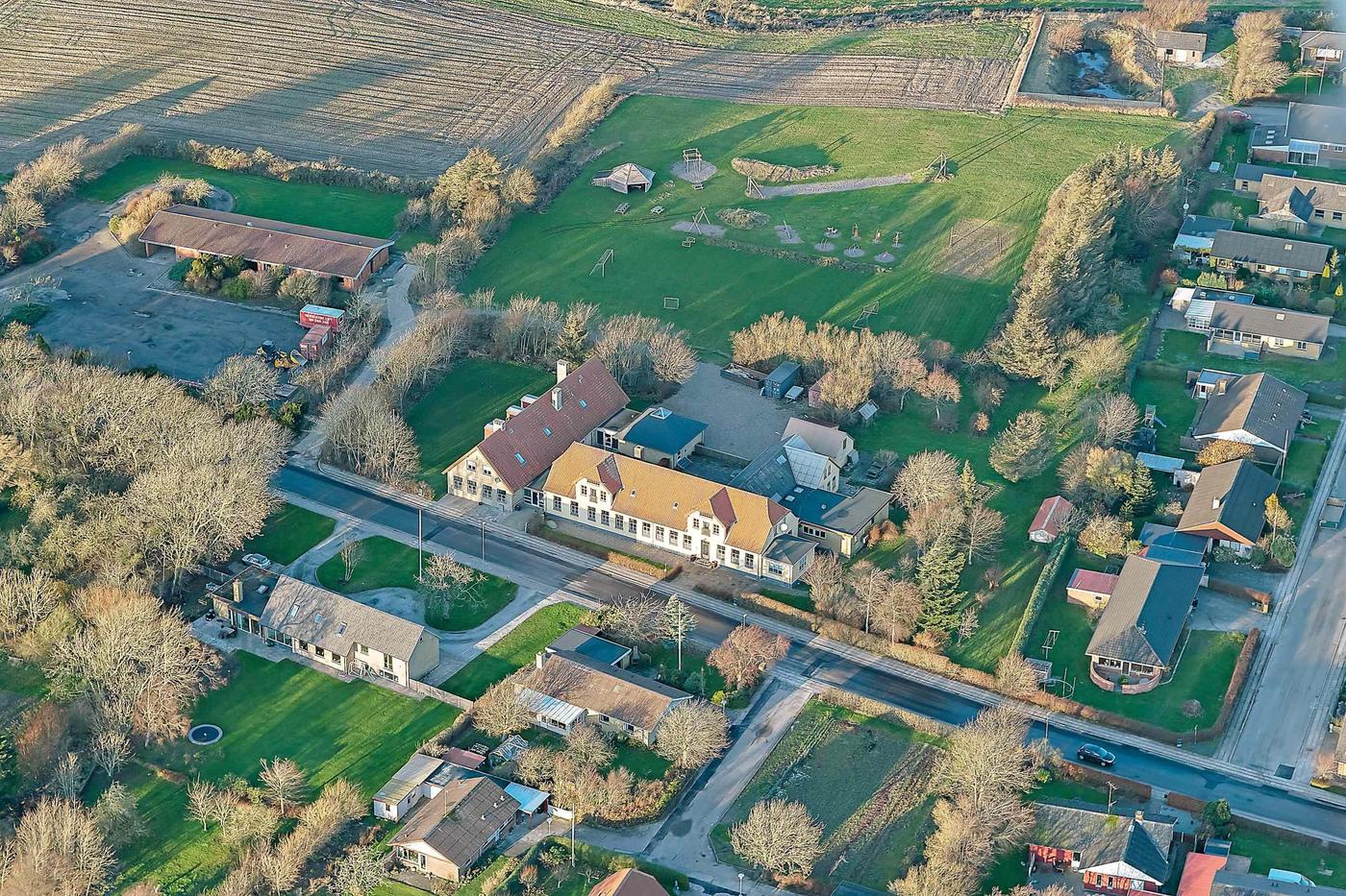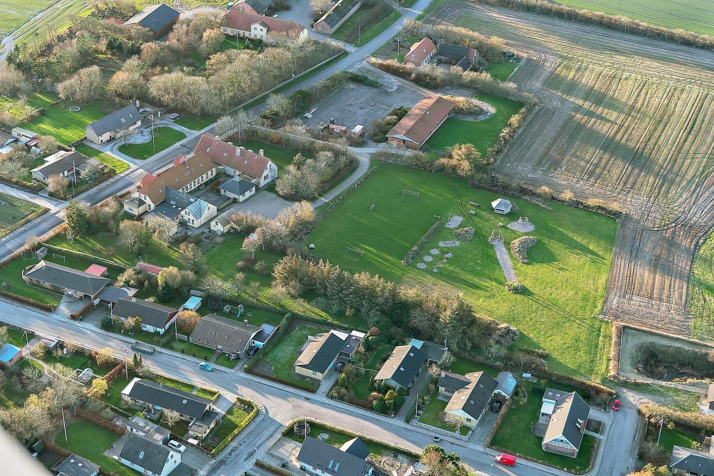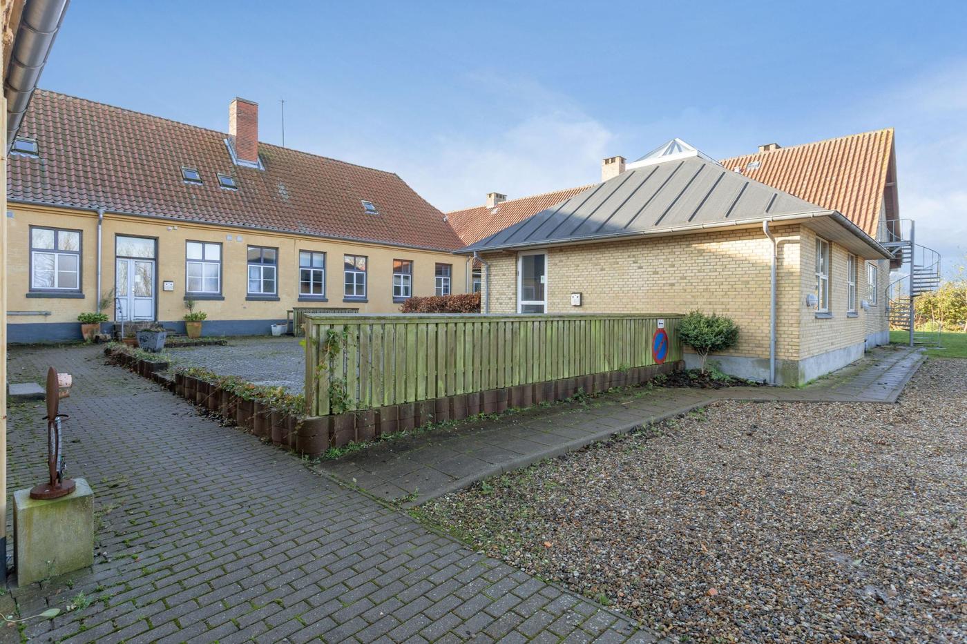 Til ejendommen er der et grusbelagt parkeringsområde, haveområde samt jordtilliggende som kan anvendes til boldbane, aktivitetsområde m.v.