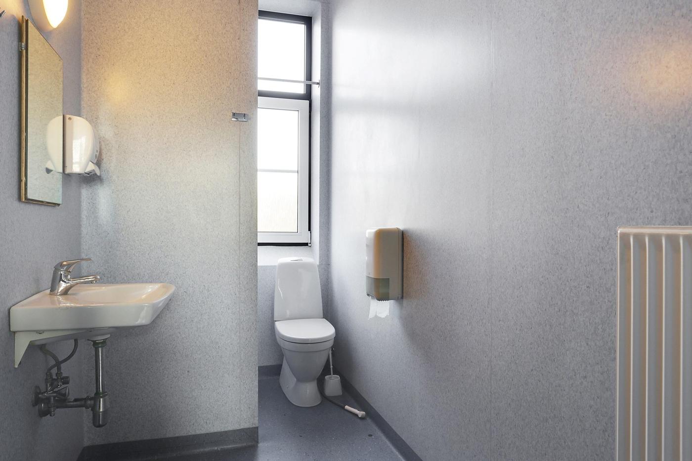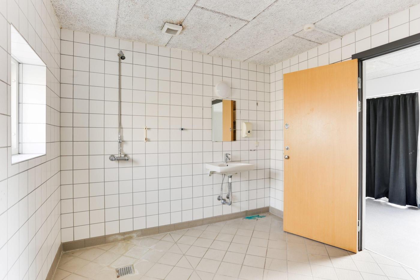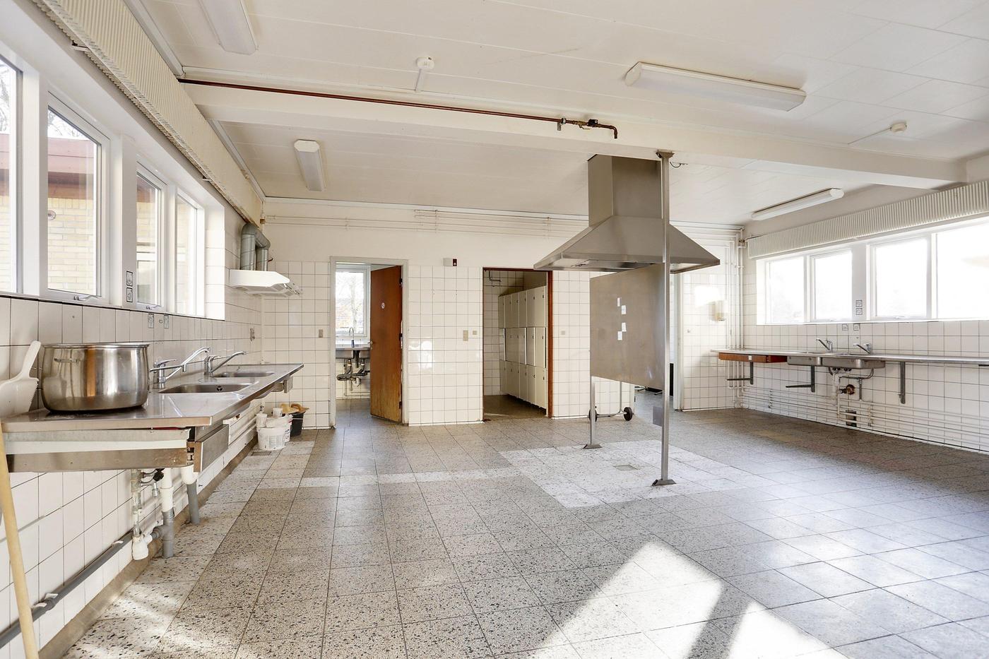 Sidebygningen mod øst er indrettet med 4 rum, toiletter samt stort lokale anvendt til industrikøkken.
