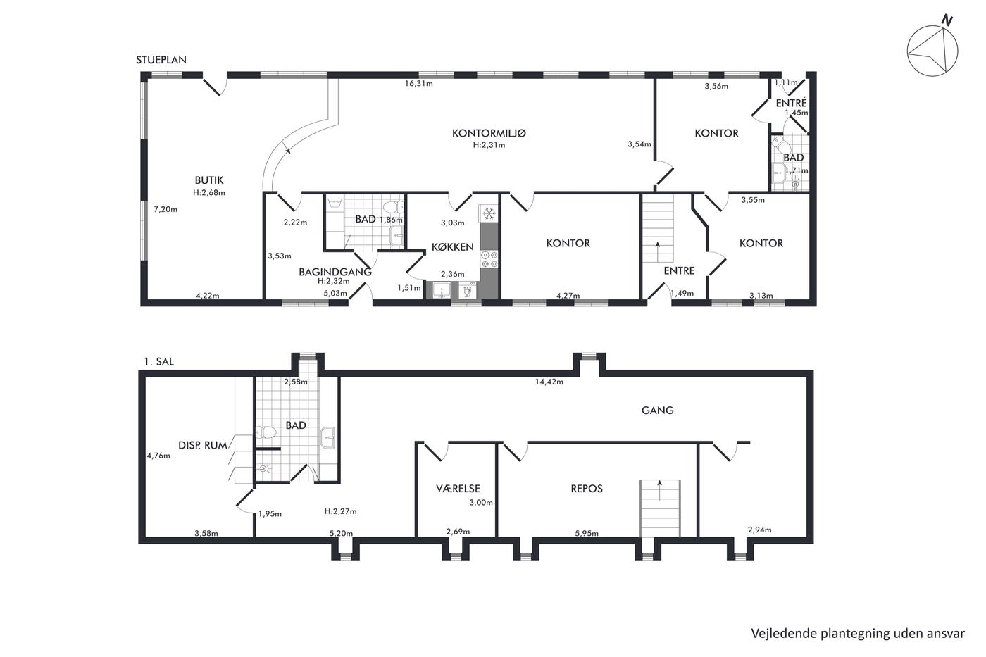 Der er en tale om et indbydende lejemål med god plads til storrumskontor o.l., hvor der kan etableres flere arbejdsstationer og hvor der er mulighed for flere møderum/kontorer. Herudover er der køkken og toiletfaciliteter.