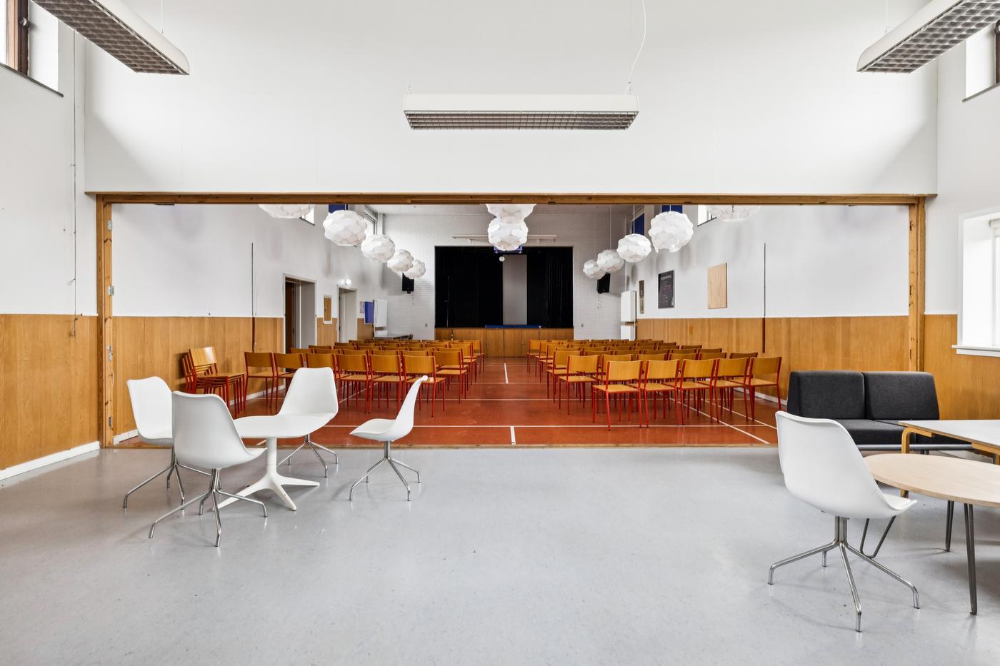 Desuden forefindes stor fritliggende idrætshal med tilhørende omklædnings-/ og badefaciliteter