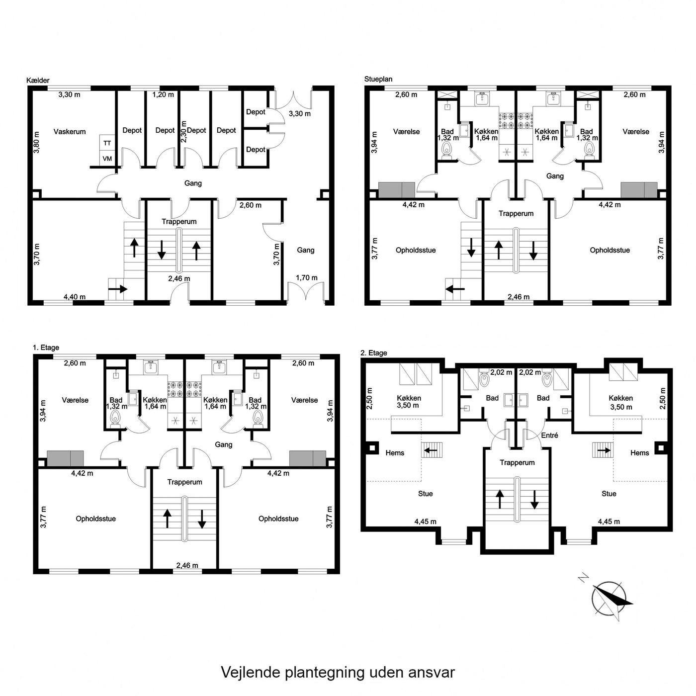 Beskrivelse Ejendommen indeholder i alt 6 lejligheder fordelt på 4 delevenlige 2-værelseslejligheder på hver 50 m² beliggende i henholdsvis stueplan og på 1. sal. I 2004 blev ejendommen gennemgribende renoveret, hvor der bl.a. blev etableret 2 hyggelige lejligheder i tagetagen på hver 35 m² med loft til kip, og hems på ca. 5 m². I forbindelse med etableringen af taglejlighederne blev der lagt nyt tag på ejendommen. Der blev endvidere lavet egne badeværelser i alle lejligheder (før bad i kælderen), ligesom der blev monteret nye køkkener. På den udvendig del af ejendommen blev der i 2004 lavet nye fuger, og størstedelen af ejendommens vinduer blev udskiftet med træ-aluvinduer. Herudover blev kviste og sålbænke beklædt med zink, og endelig blev der monteret nye tagrender og nedløb.